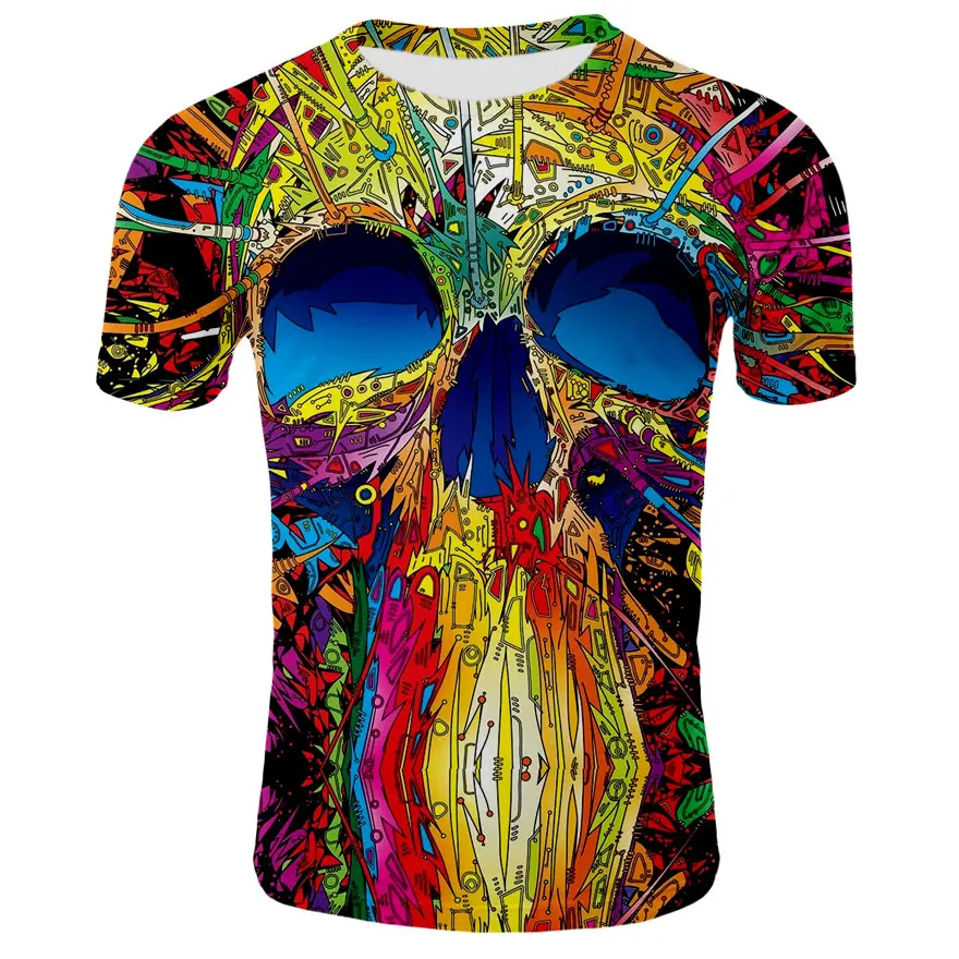 Новинка 2020, футболка с коротким рукавом и 3D принтом, футболка с 3D черепом из ужасов, летняя футболка в стиле хип-хоп с коротким рукавом, топы для мужчин и женщин sh