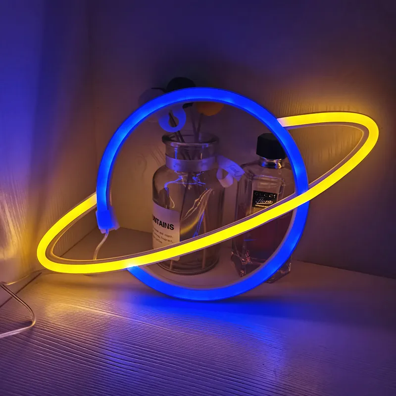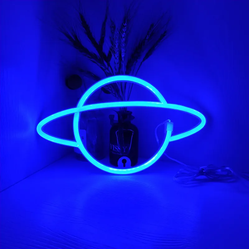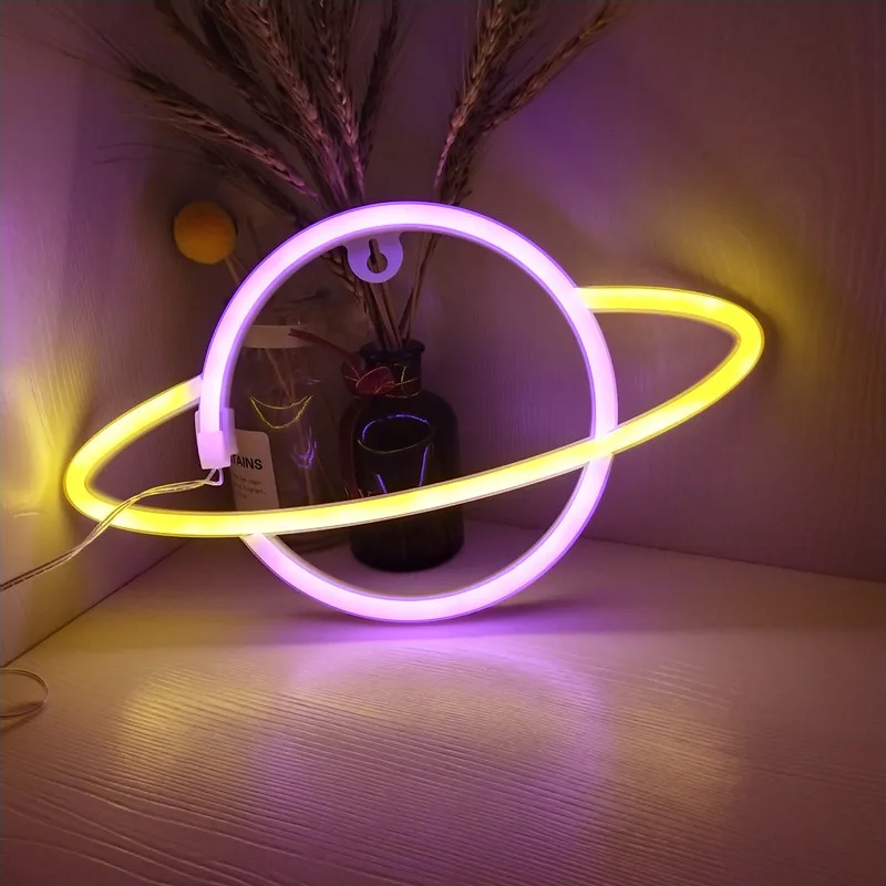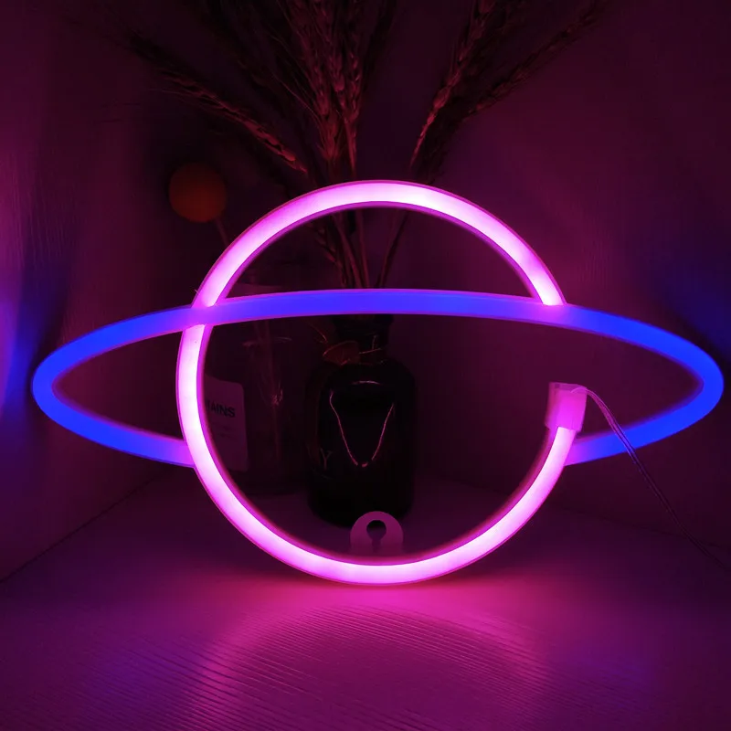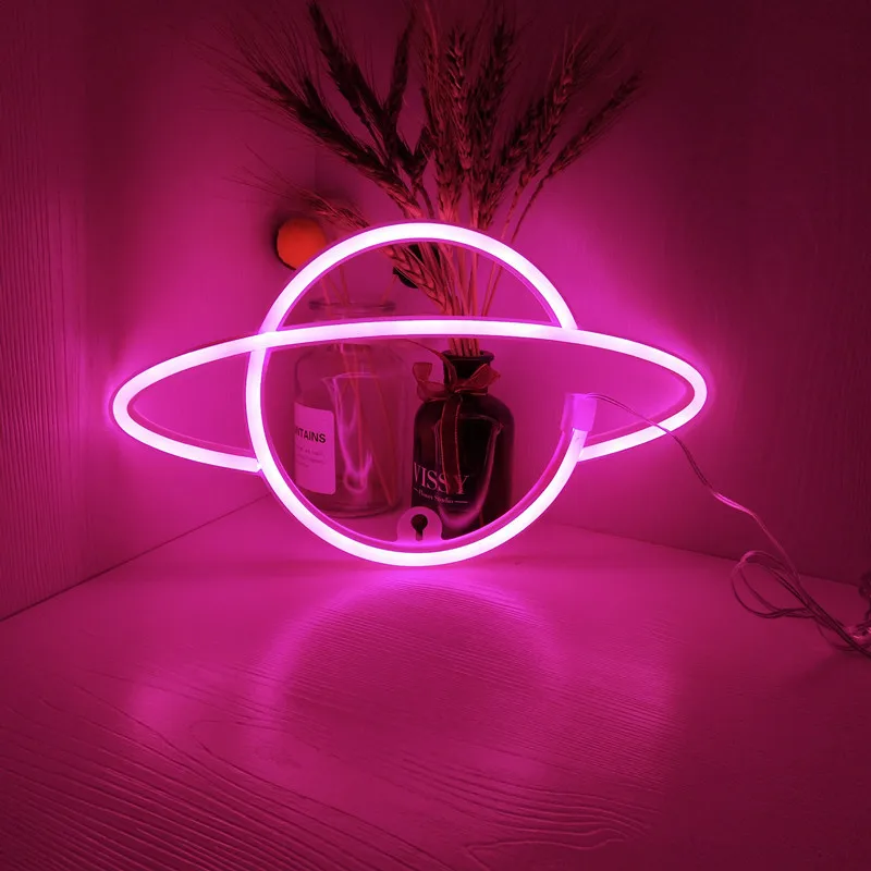 Неоновый светодиодный светильник Saturn, Настенный декор для спальни, подвесной ночник, домашвечерние ничный декор, Рождественский подарок
