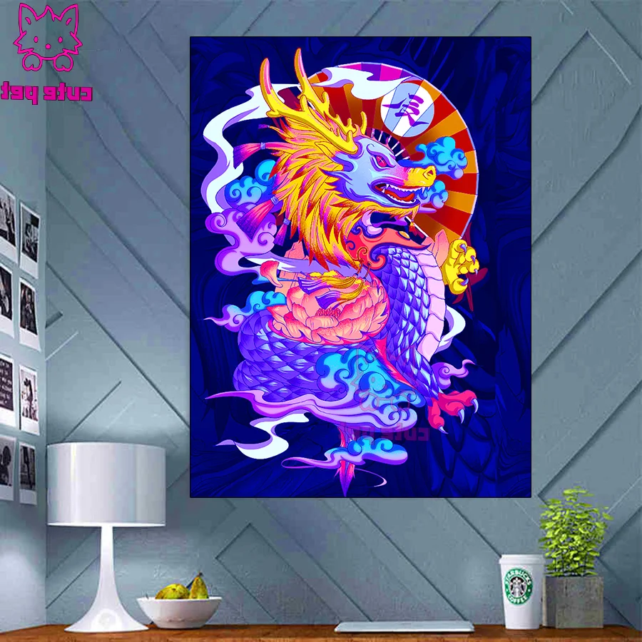 Алмазная 5D Вышивка сделай сам, алмазная живопись с китайским драконом, вышивка крестиком, мозаика стразы, красивое украшение для дома