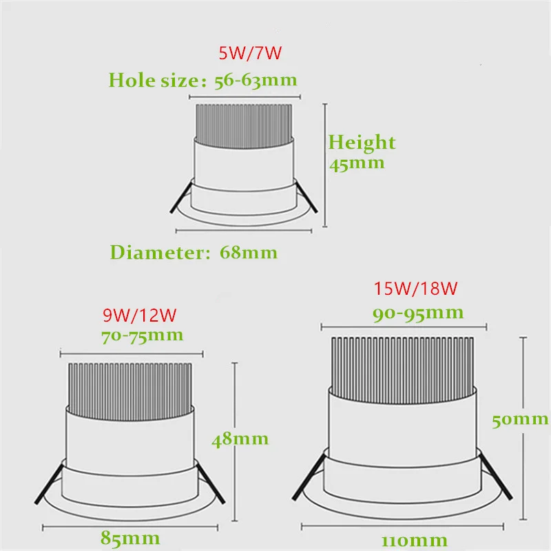 Точесветильник светодиодный светсветильник, 5 Вт, 7 Вт, 9 Вт, 12 Вт, 15 Вт, 18 Вт, 85-265 в