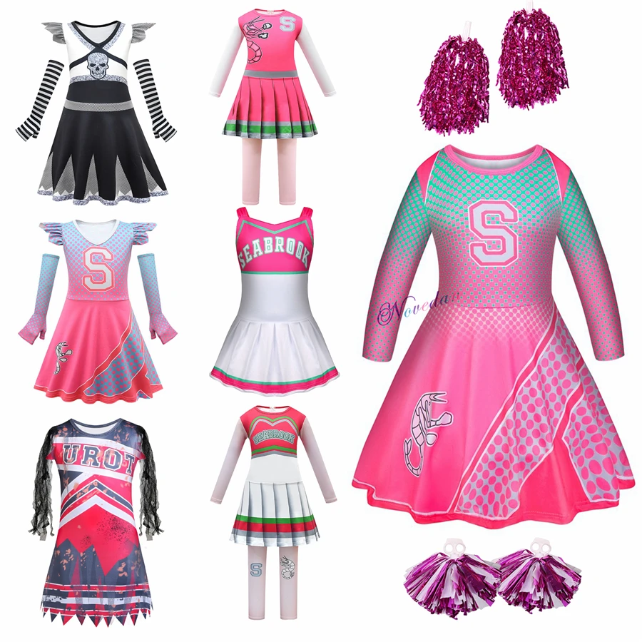 Костюм черлидера для девочек на карнавал, Хэллоуин, детский наряд Эддисона для косплея зомби, нарядное платье, костюм, одежда