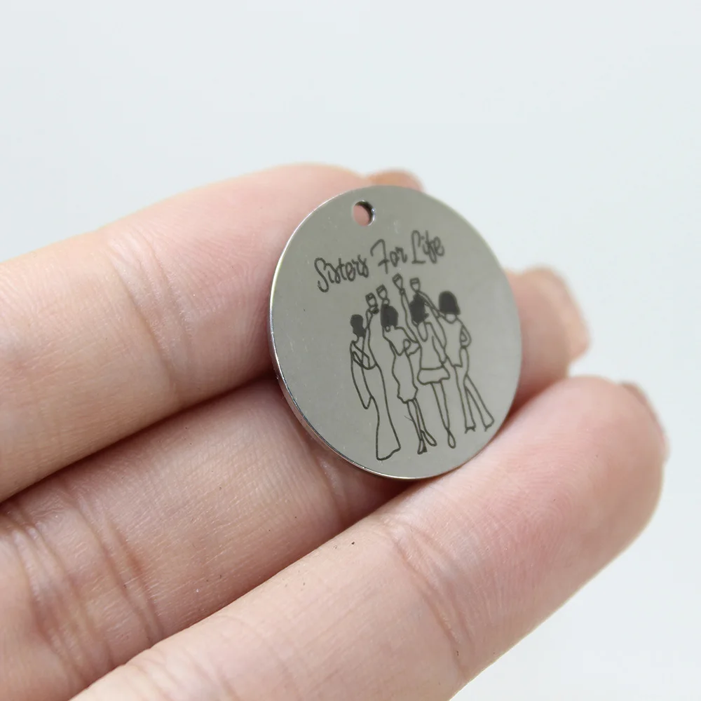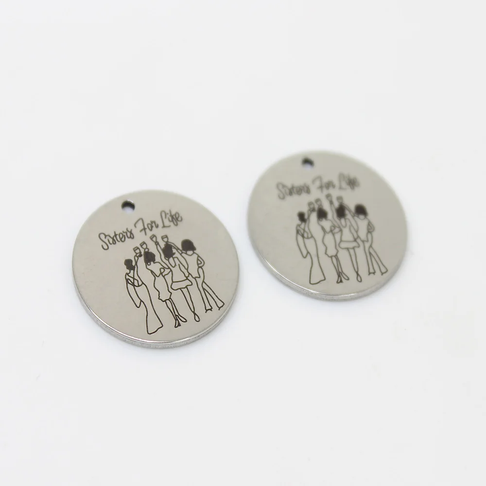 8 шт., 22 мм, искусственная кожа, нержавеющая сталь, лазерная гравировка, сестры для живого кулона для ожерелья, сделай сам, изготовление ювелирных изделий