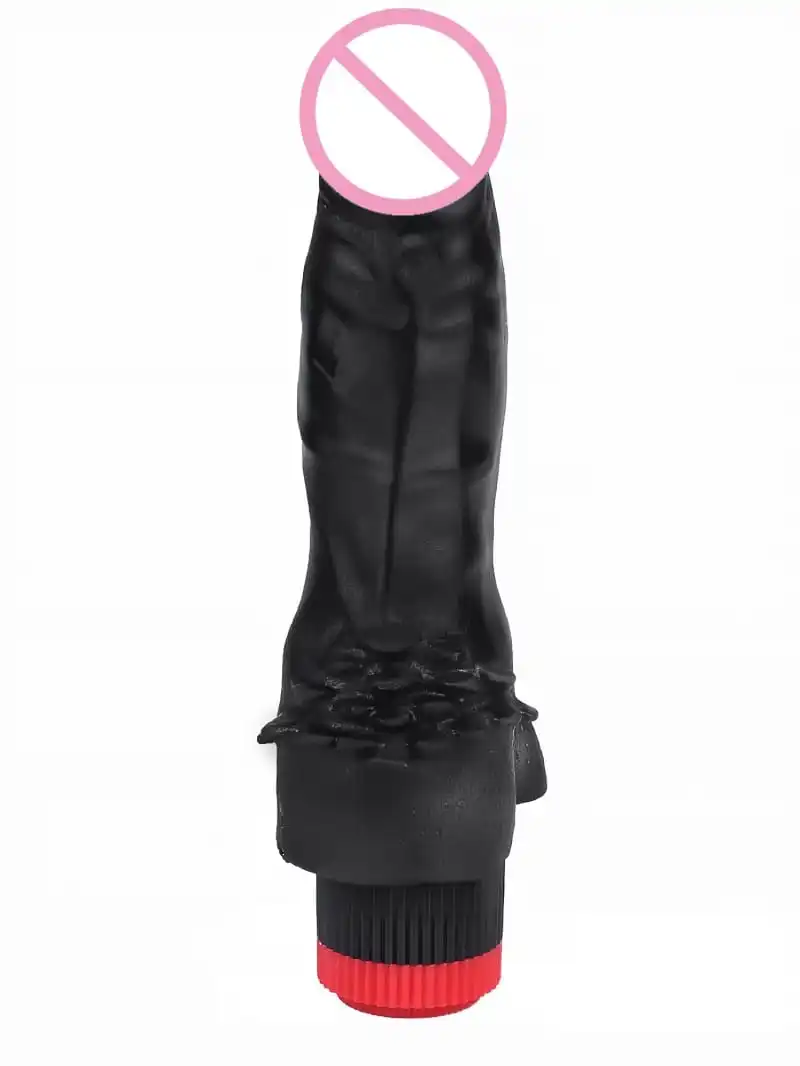 Реалистичный чёрный вибромассажер с крупными венками - 19,5 интим