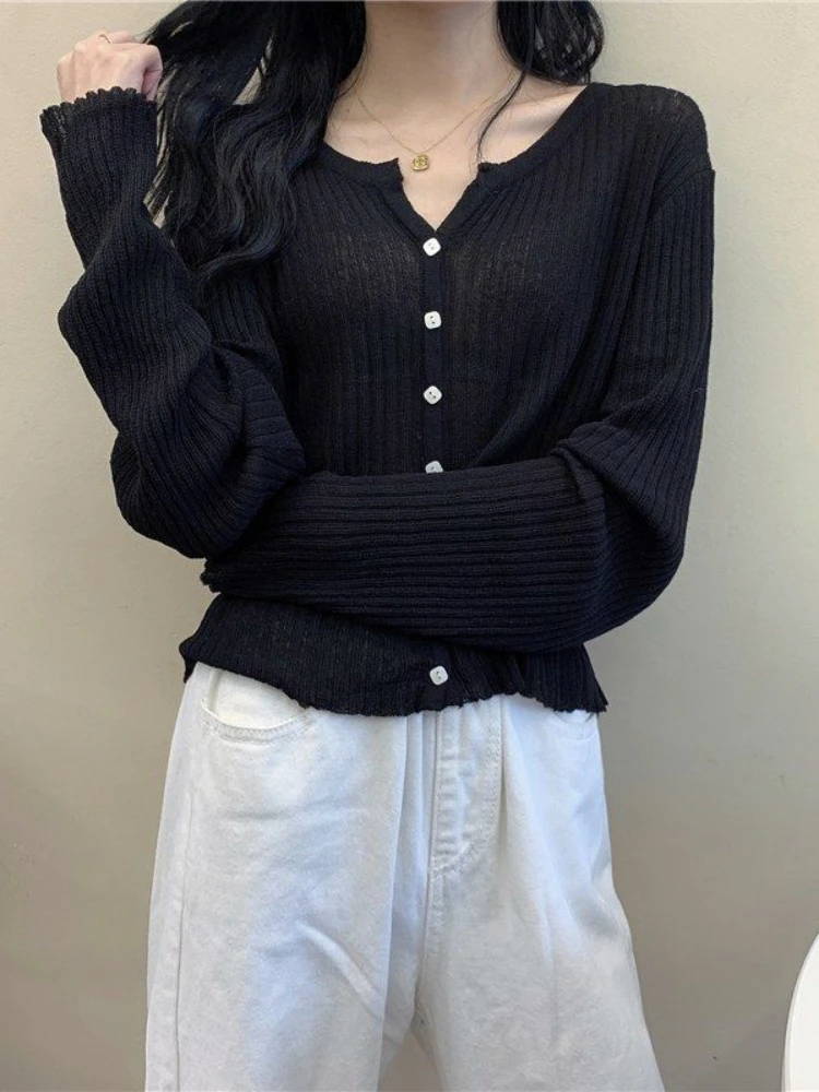 Кардиган женский Y2K, летний, однотонный, с V-образным вырезом