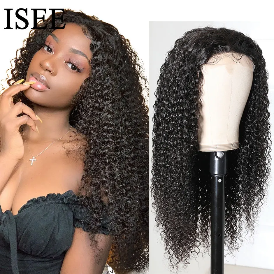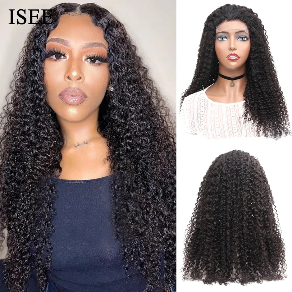 Монгольский кудрявый парик для женщин ISEE Волосы Кудрявые Кружева Закрытие парик 5X5 Кудрявые Кружева Закрытие человеческих волос парики шнурка Закрытие парик