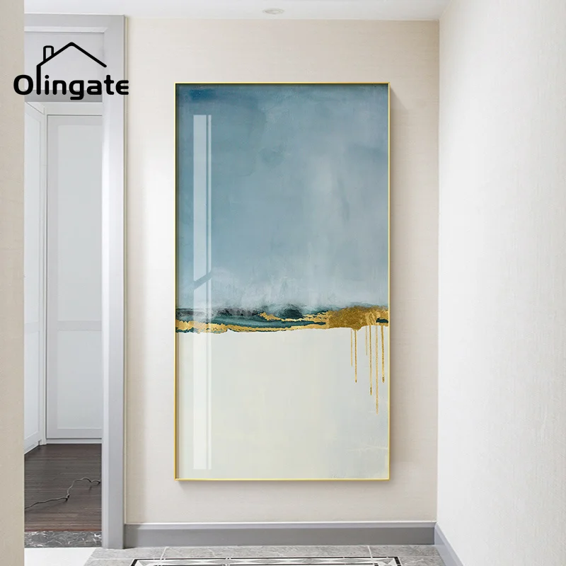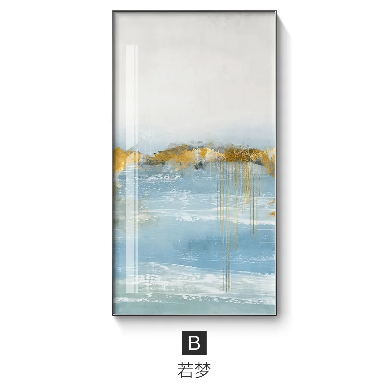 Абстрактный синий белый пейзаж Холст Плакаты печать золотые настенн...