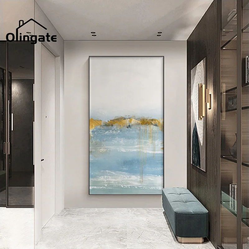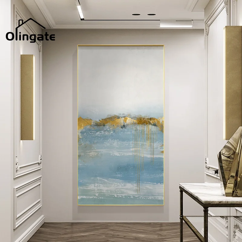 Абстрактные золотые настенные картины, синие, белые морские пейзажи, печатная живопись, цельный холст, искусство, домашний декор для гостиной, рисования