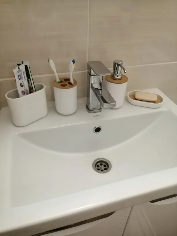 Изготовлен из полипропиленового материала, экологически чистый и здоровый. Украшенный бамбуком и деревом, натуральный, элегантный и со вкусом. Держатель туалетной щетки: щетка с бамбуковой ручкой и ПП держатель основания. Герметичный дизайн, запах не подвержен воздействию. Мыльница: бамбуковые деревянные поддоны могут быть вывезены. Полый дизайн с функцией слива. Дозатор мыла: гладкие и гладкие насадки подходят для вашей ладони. Держатель зубной пасты: встроенная бамбуковая перегородка для разделения зубной пасты и зубной щетки. Бамбуковая перегородка может быть вывезена. Держатель зубной щетки: четыре части дизайна для зубной щетки до 4. Бамбуковая перегородка может быть вынута, затем держатель зубной щетки может использоваться в качестве чашки.