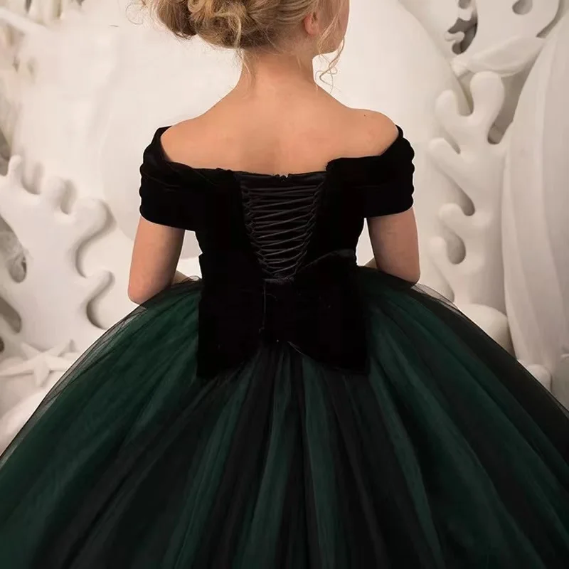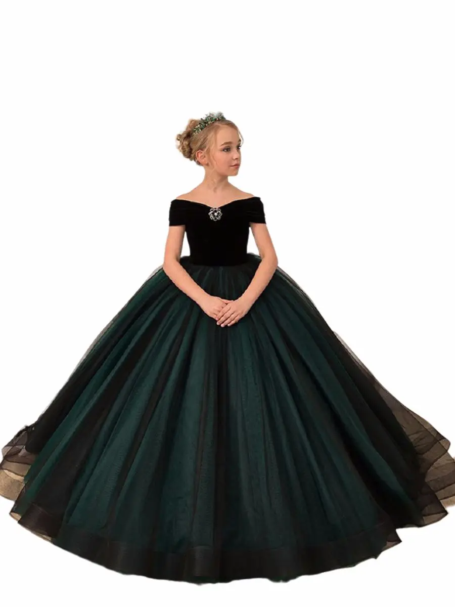 Детские платья для девочек, элегантные длинные платья из зеленого т...