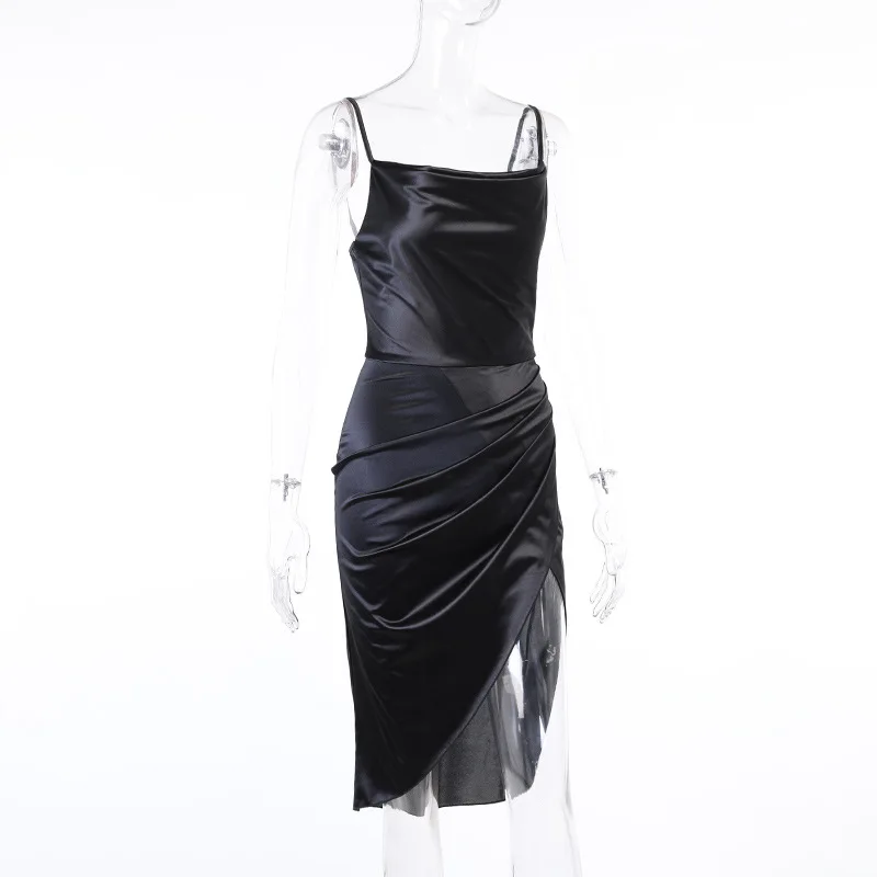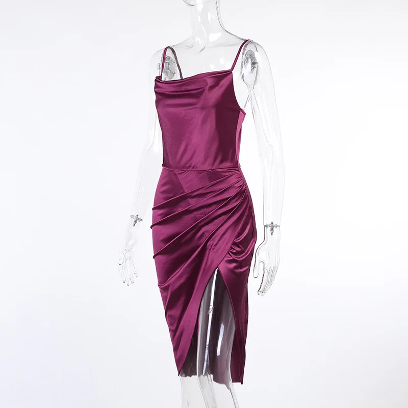 Летнее платье для женщин пикантные Разделение рюши Длинные атласные...