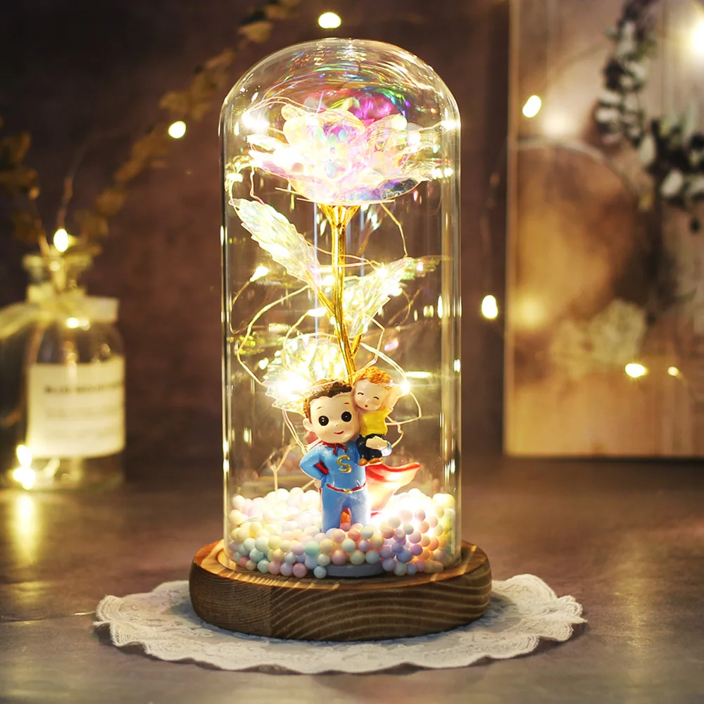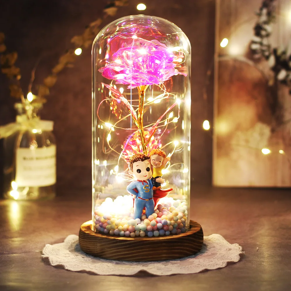 Светодиодный ственная вечная чудовище, красивая роза, цветок в стеклянном куполе, Свадебный домашний декор, день рождения отца, матери, Валентин