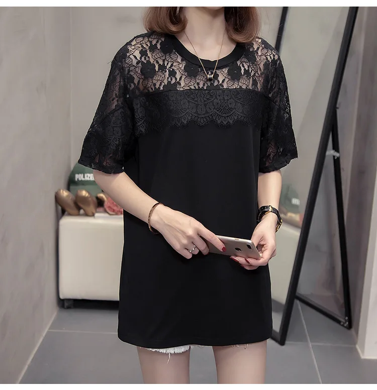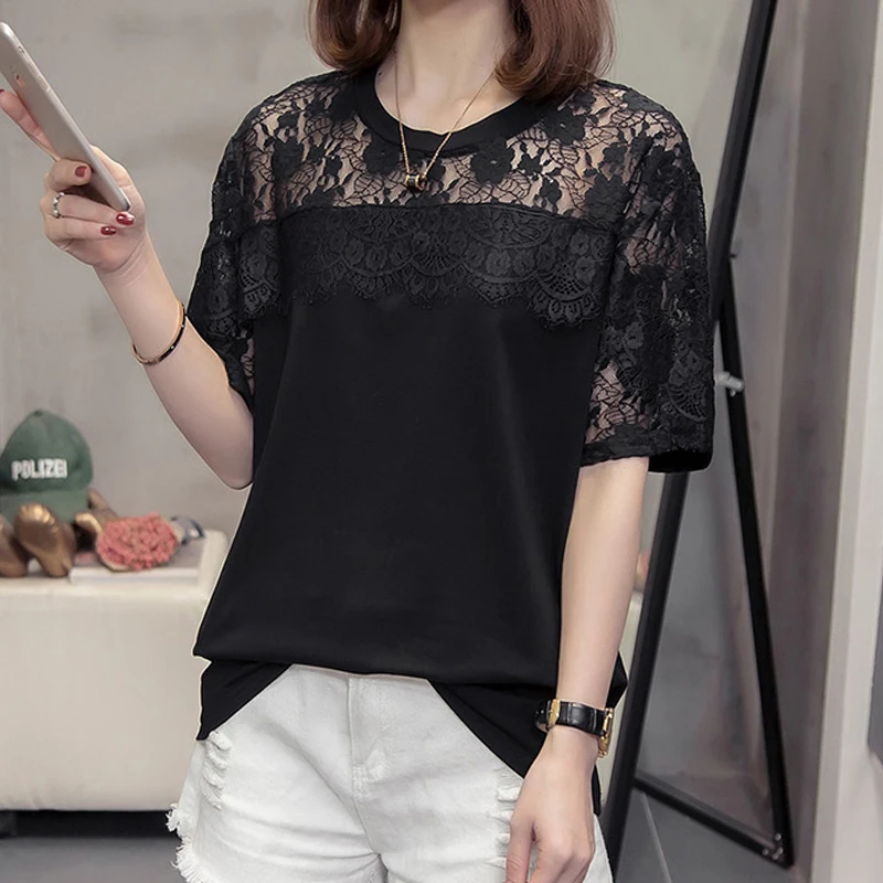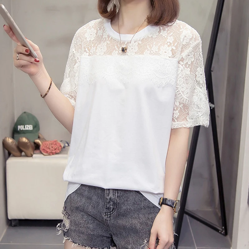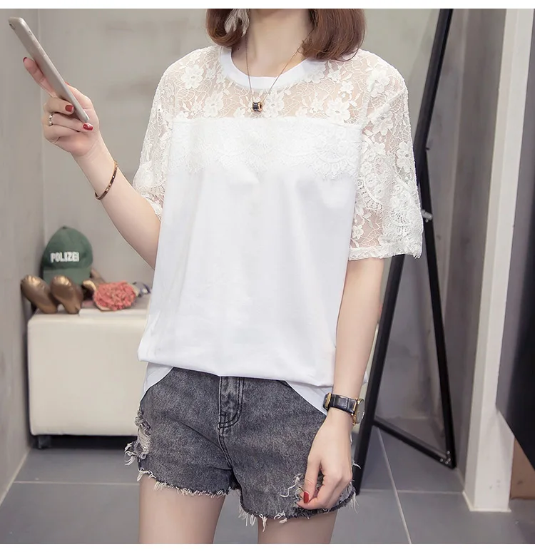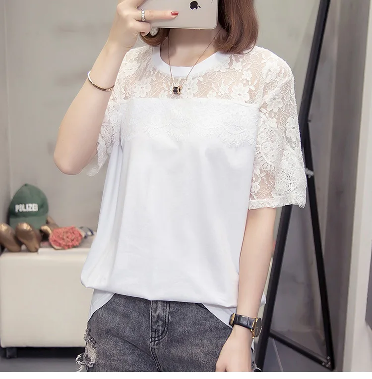 Летняя мода 2021 года в корейском стиле, футболка с короткими рукавами и кружевной строчкой, женская уличная повседневная свободная дышащая полая блузка