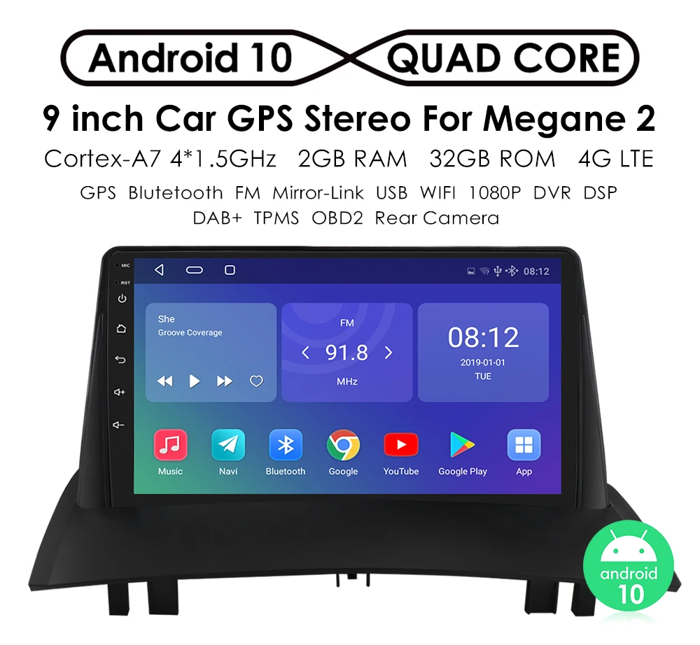Автомагнитола 2 Din для Renault Megane 2 2002-2009, 4G, стерео, GPS...