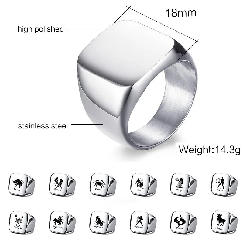 Vnox 18 мм перстень для Для мужчин Для женщин Для мужчин, зодиака 12 гороскоп Созвездие Знак ремешок на пальцы рук, Нержавеющаясталь Aries панк кольцо