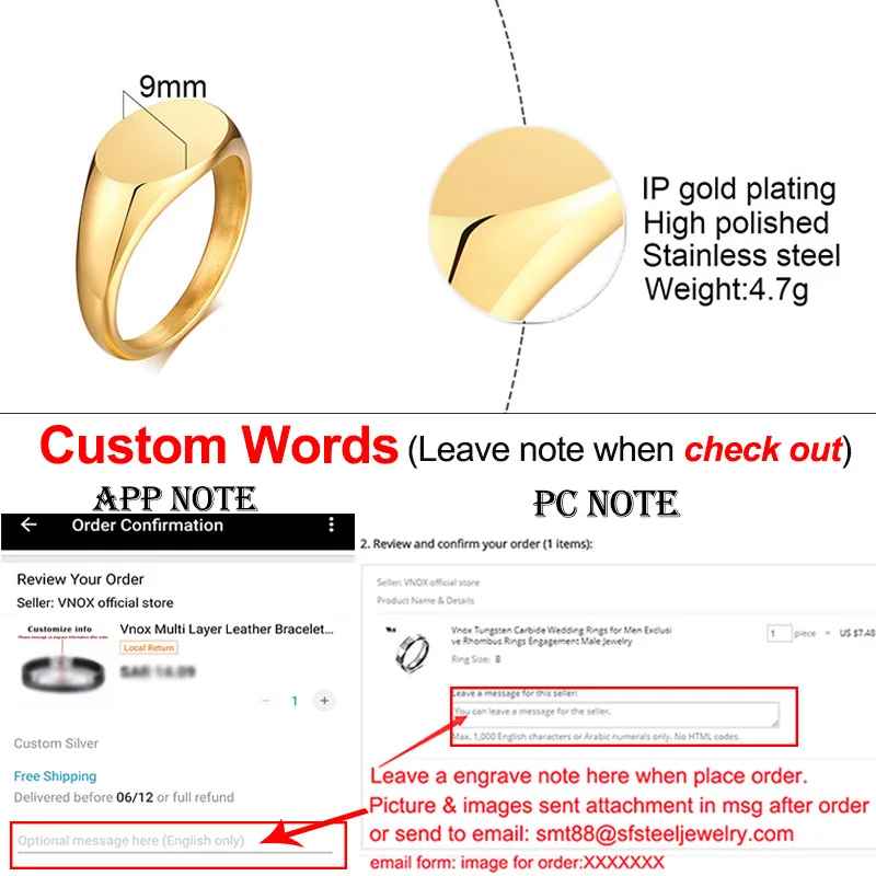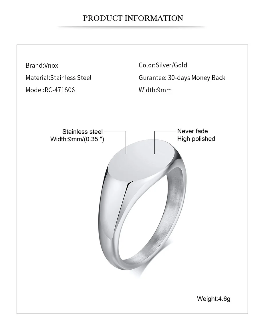 Vnox 9 мм персонализированный перстни для Для женщин, минималистский овальная верхняя часть штамп ремешок на пальцы рук, шикарный Нержавеющаясталь на улице ювелирные изделия
