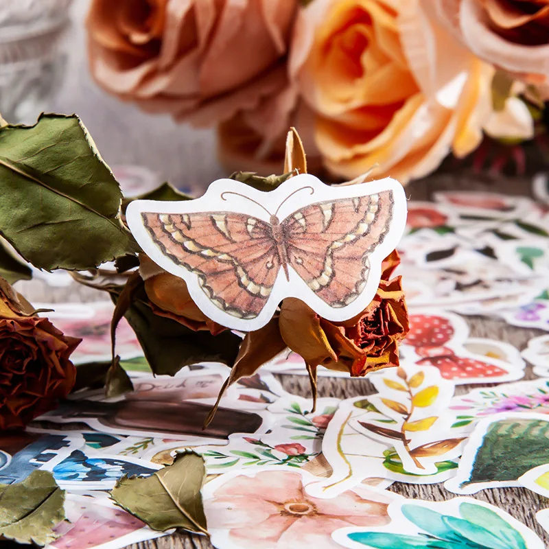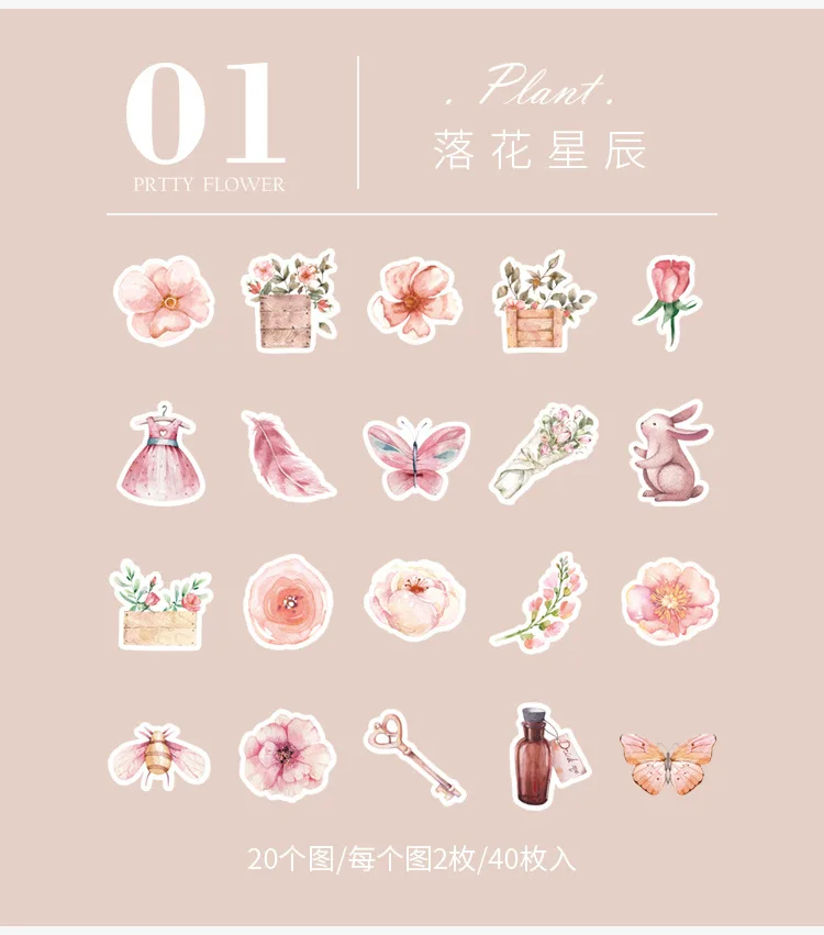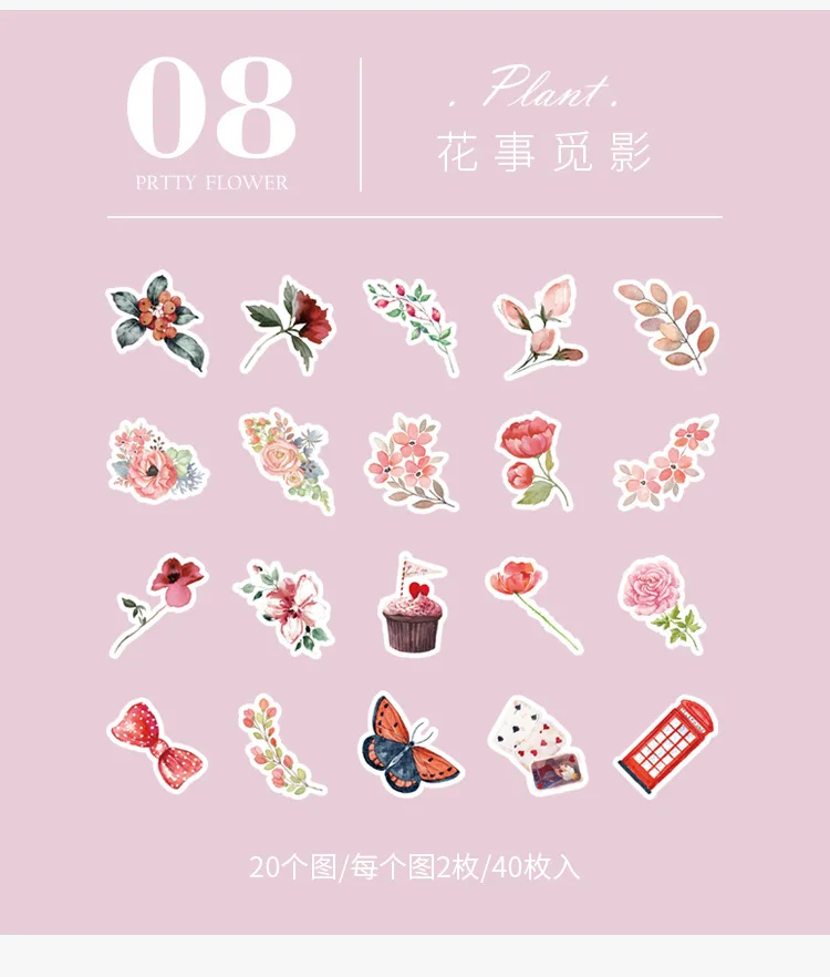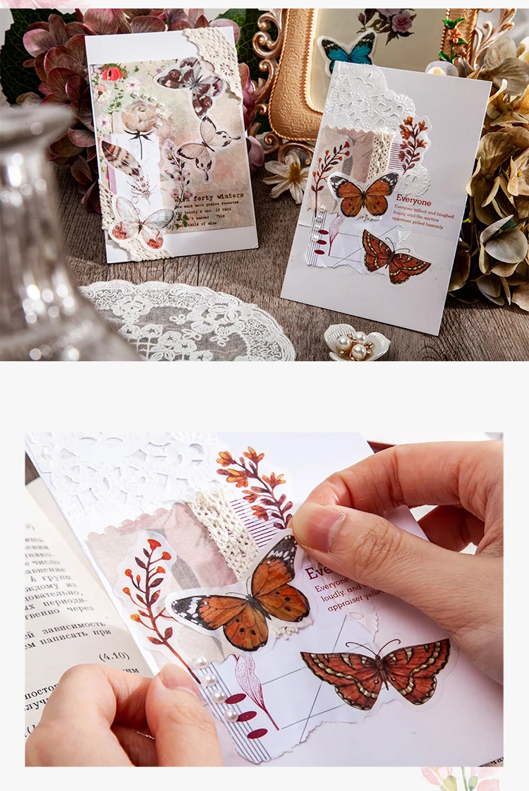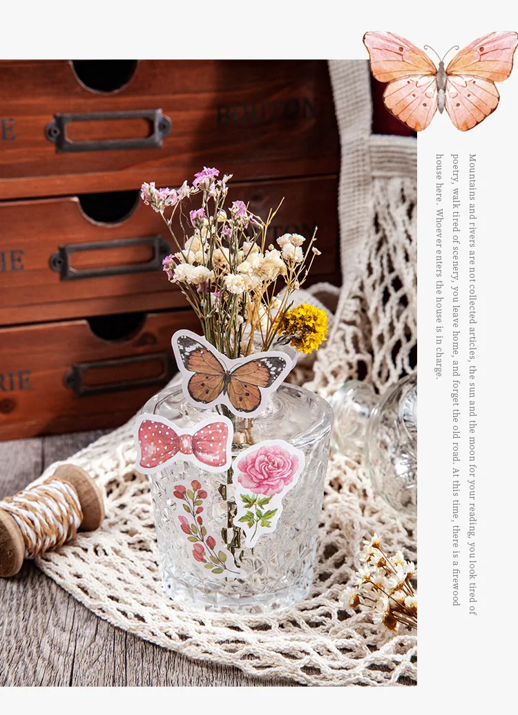 40 шт.упак. в ретро-стиле с цветочным принтом и бабочками в Стикеры...