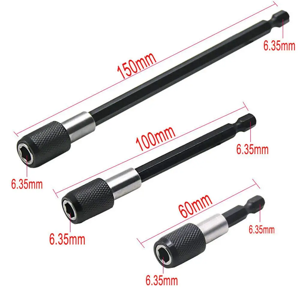 Быстросъемный держатель для отвертки с шестигранным хвостовиком, 14 дюйма, с регулируемым удлинителем, магнитный держатель для бит, 60 мм, 100 мм, 150 мм