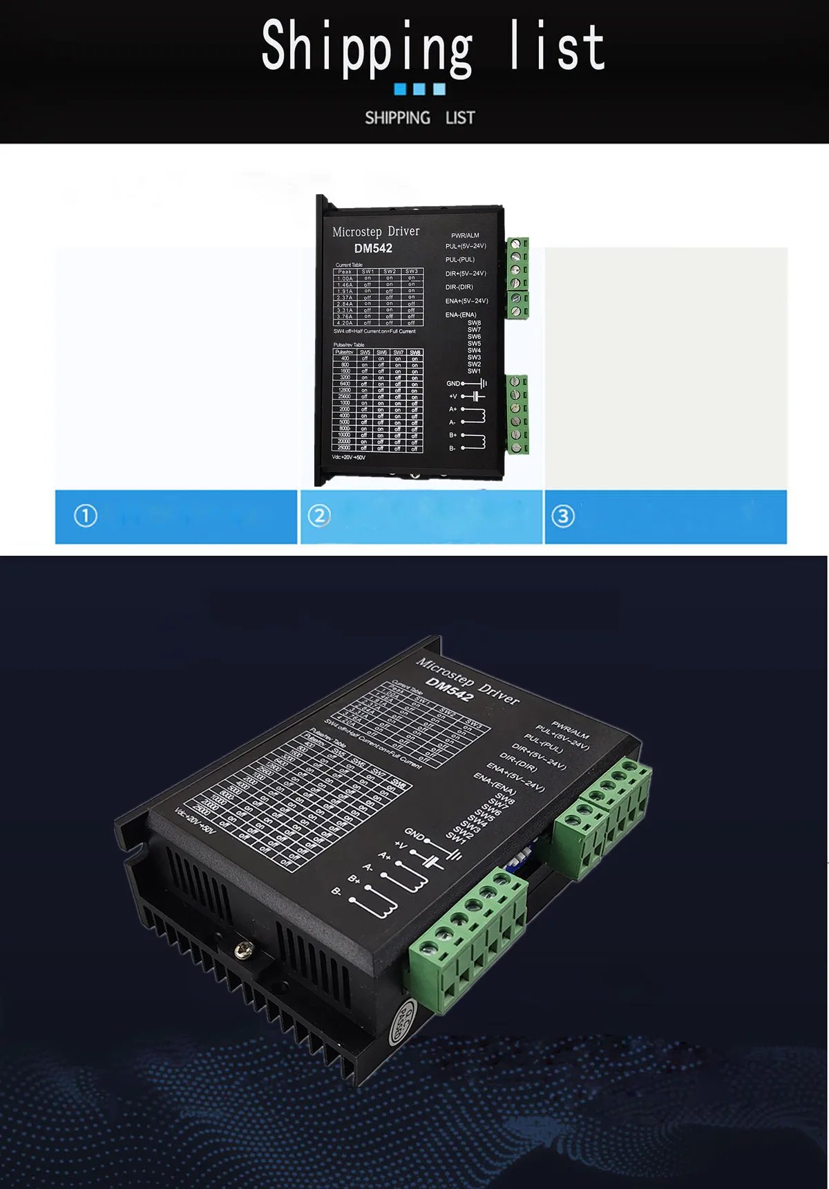 2. Особенности:Частота измельчения 20 кГцОптический изолирующий входной сигналВыходной ток DIP переключатель регулируетсяБиполярный метод измельчения постоянного токаВысокая сегментация: 2,4,8,16,32,64, 128256. 5,10,25,50, 125200TTL входной сигнал совместим, при приеме дифференциального входного сигнала 3. Характеристики:Источник питания: постоянный ток 24-60 (В)Максимальный ток: 4,5aВыходной фазовый ток: 1.5A-4.5AЛогический входной ток: 10-20 мАРабочая температура:-15 °-+ 45 °Размеры: 11,7*8,5 см/4,61*3,35 дюймов 4. Примечание:Допускается ошибка в 1–3 мм из-за измерений вручную Пожалуйста, убедитесь, что вы не возражаете, прежде чем сделать ставкуИз-за разницы между различными мониторами изображение может не отражать фактический цвет изделия. Спасибо!5. Определение и метод подключения продукта