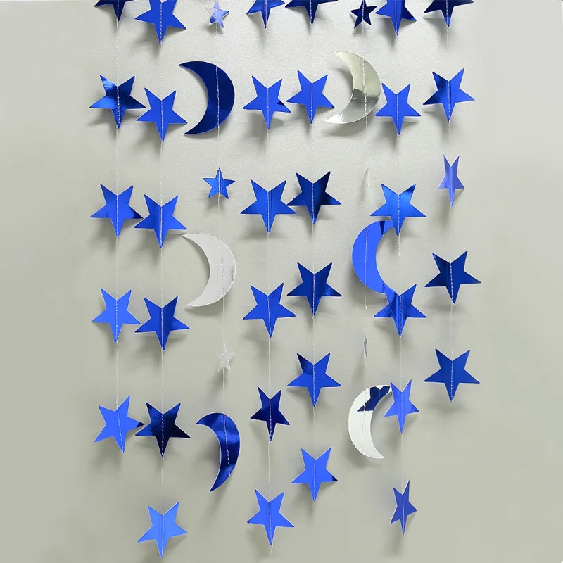 Бумажные гирлянды для свадьбы, 4 м, золото, серебро украшение Мубарак, в форме звезды, Луны, украшения для рукоделия, Рамадан, Карим, ИД день рождения, мероприятие, вечеринка