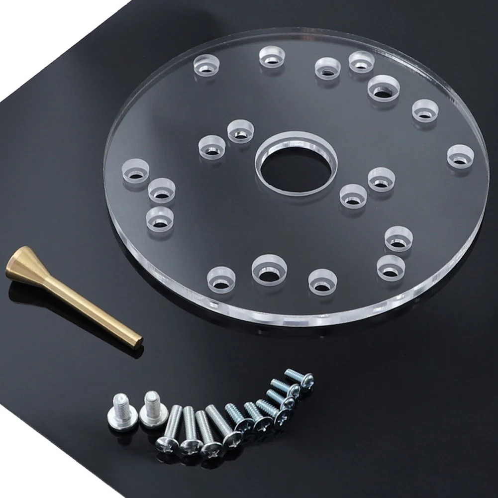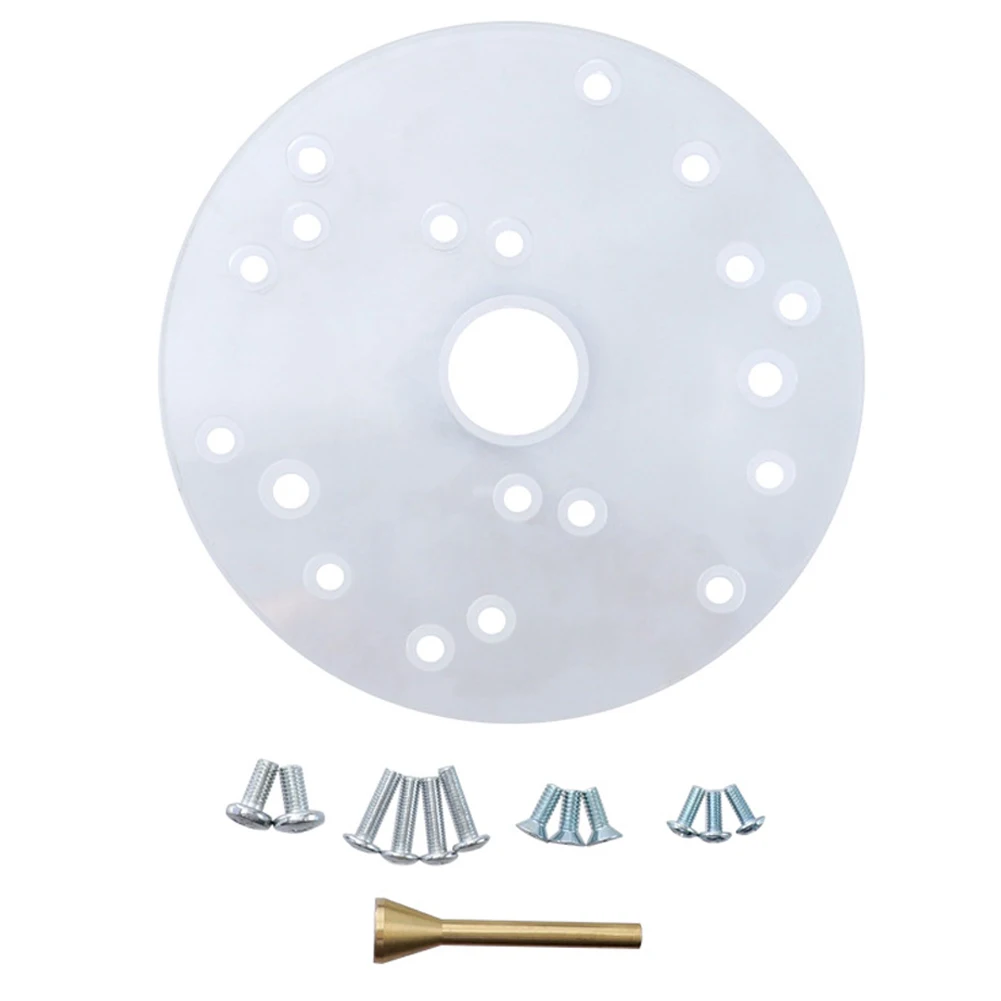 Характеристика:* 1. 6,5 "прозрачный акриловый для крепления на руке для является просверленные для наиболее распространенных роутерами.* 2. С центрирующим штифтом и различными размерами шнеков для размещения шаблонов направляющих вариаций.* 3. Позволяет использовать направляющие втулки для кабеля porter для повышения точности и служит подходящей заменяемой пластиной или улучшенным обновлением до существующей сборки маршрутизатора.* 4. Центрирующий штифт маршрутизатора добавлен для точного выравнивания от основания до центра цанги маршрутизатора.* 5. ТОЛЬКО Комплект базовой пластины маршрутизатора, другие аксессуары не включены в демонстрацию на картинке.Характеристики:Материал: акрилВнешний диаметр: 164 ммВнутренний диаметр: 30 ммТолщина: 7 ммЦвет: прозрачный, как показано на фотографииКоличество: 1 комплектПосылка:1 комплект x набор базовой пластины маршрутизатораПримечание:Нет розничной упаковки.Возможны отклонения в 0-1 см вследствие измерений вручную. Пожалуйста, убедитесь, что вы не возражаете, прежде чем сделать ставку.Из-за разницы между различными мониторами изображение может не отражать фактический цвет изделия. Спасибо!