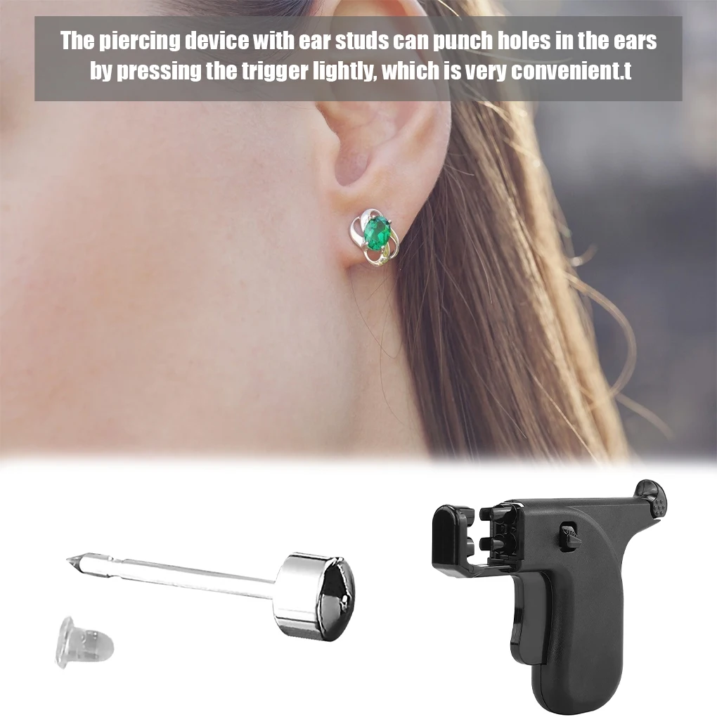 Профессиональный пистолет для пирсинга, набор инструментов для безболезненного прокола уха, носа, пупка и завитка уха со стальными серьгами-гвоздиками под золото, автоматическое устройство, Стерильный Комплект