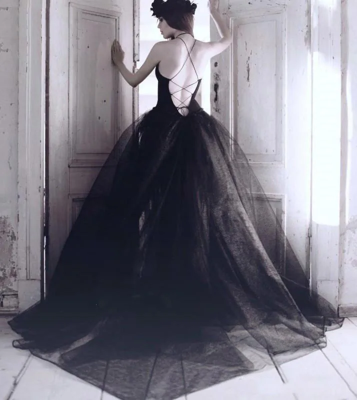 Черное свадебное платье в готическом стиле с открытой спиной, винтажное платье из тюля с коротким шлейфом размера плюс, бальное платье длиной до пола