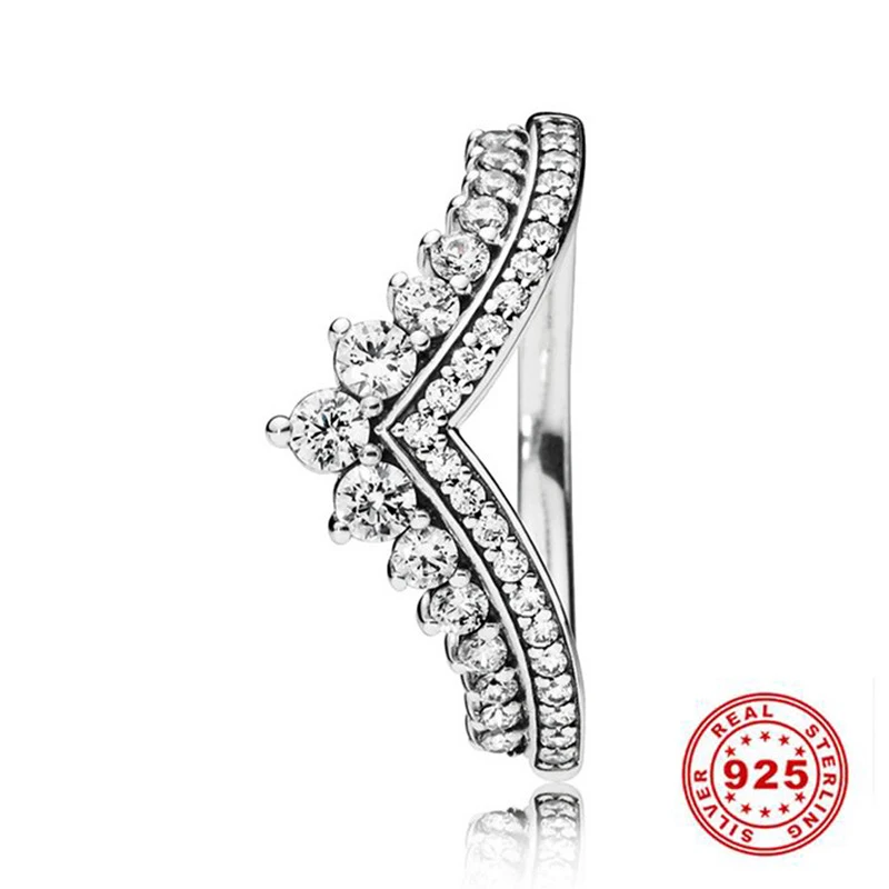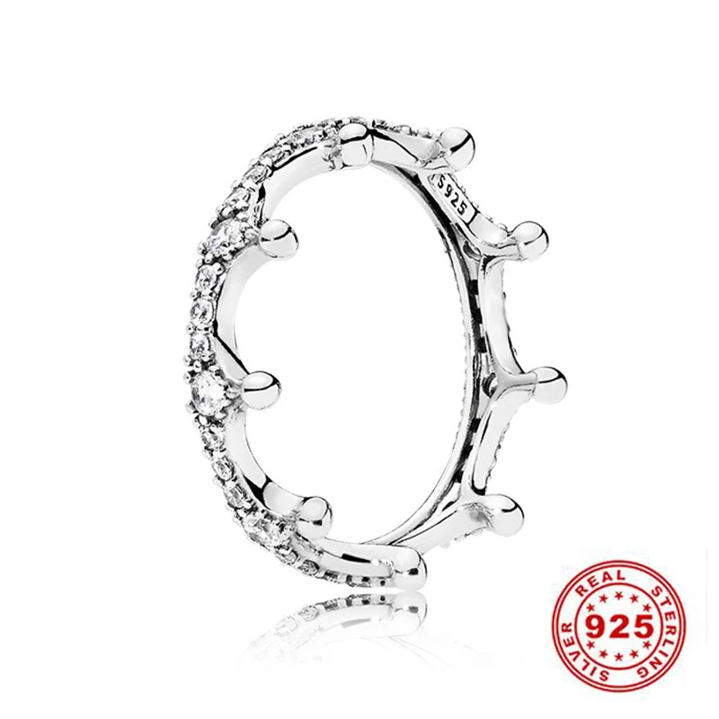 Кольцо женское из серебра 925 пробы с фианитами тиара корона принцессы, сверкающее Сердце Любви