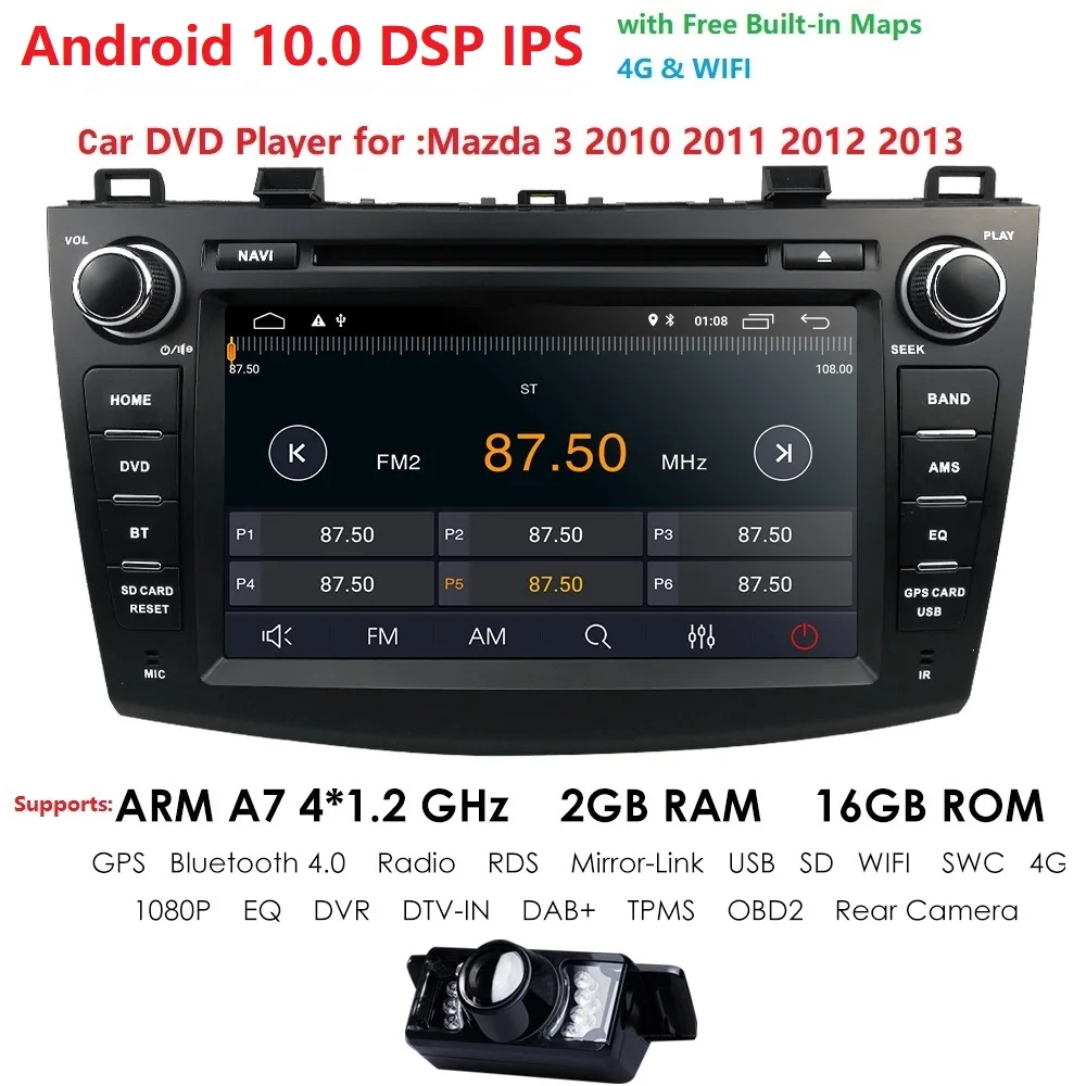 Android 10, автомобильный DVD-плеер 8 дюймов, GPS, Android 4G, навигация для Mazda 3 Mazda3 2010 2011 2012, мультимедийный Головной блок rds