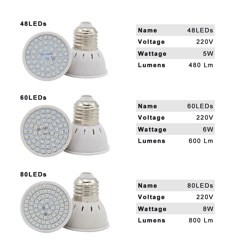Лампа для выращивания растений ZHMZH, 60 светодиодов, 80 светодиодов, лампочка полного спектра для комнатных садовых растений, лампочки E27 E14 MR16 GU10, 220 В, 110 В