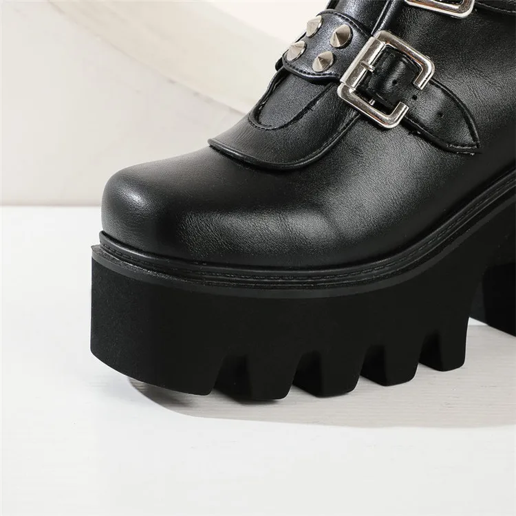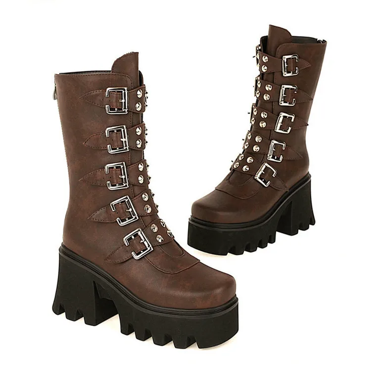 GXCMHBWJженские ботинки на платформе в готическом стиле в стиле панк; Женские ботинки до середины икры с круглым носком и пряжкой на молнии сзади; Сезон осень-зима