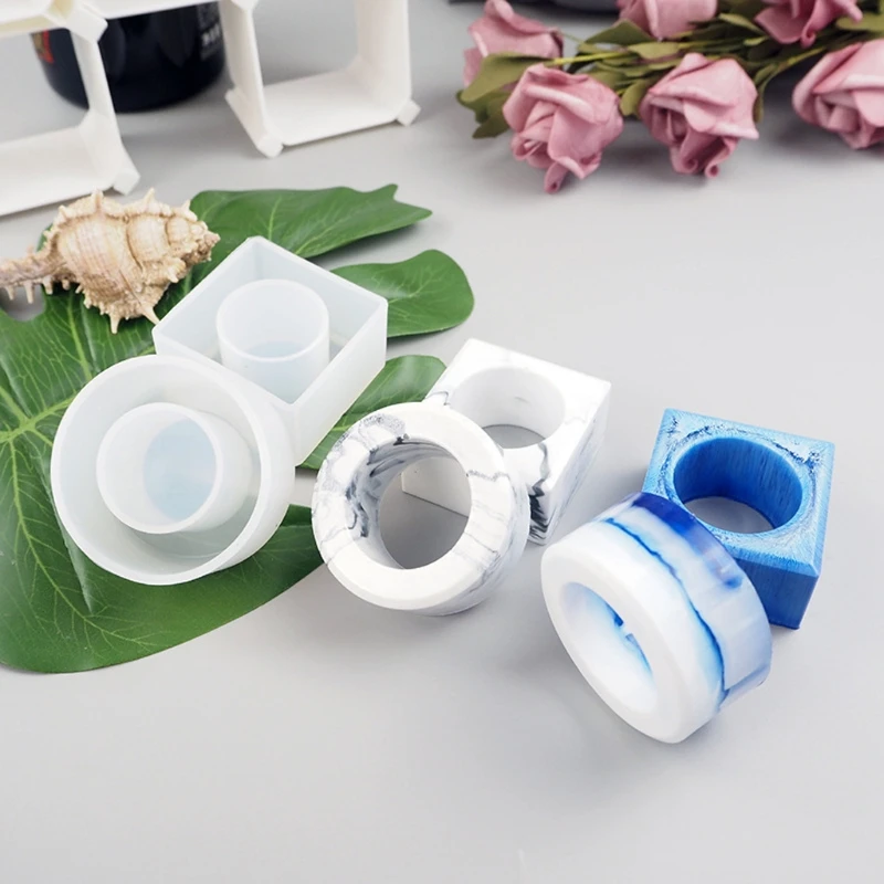 4 формы минималистский Держатели салфеток Кольца смолы комплект пресс-форм Круглый с квадратными каблуками в форме сердца с шестигранной головкой для салфеток с пряжкой смолы литейная форма комплект T84A