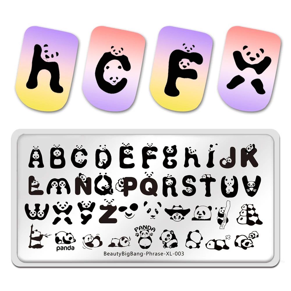 Beautybigbang пластины для стемпинга ногтей фраза XL-003 панда стиль 26 Письмо изображение 6*12 см из нержавеющей стали штамп шаблон для дизайна ногтейСпецификация:Тип товара: пластина для ногтевого художественного стемпингаРазмеры: прибл. 6*12 смВес: 35 гБренд: BEAUTYBIGBANGИнструкции: пластина защищена тонкой прозрачной защитной пленкой, пожалуйста, удалите пленку перед использованием, так чтобы лак для ногтей можно было передавать при помощи штампа.Особенность: 1. Нанесите Базовое покрытие или обычный лак на ноготь. 2. Нанесите лак для ногтей на желаемое изображение в пластине. (Рекомендуется: использовать сплошной цвет лака для ногтей, так что текстура толще, чем у любого другого лака для ногтей) 3. Поставьте скребок под углом 45 градусов и БЫСТРО снимите излишки лака, плотно прижимая скребок. Сразу прижмите штамп, немного провернув его, чтобы переснять рисунок. Изображение переносится на штамп. 5. Отпечатайте изображение на ногте, немного провернув штамп. Изображение переносится на ваш ноготь. 6. Повторите вышеописанные шаги на остальных ногтях.