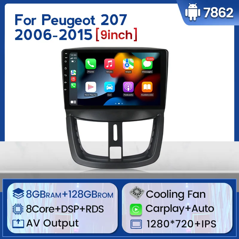 Mekede 8 ГБ + 128 ГБ 8-ядерный Автомобильный навигатор GPS радио плеер для Peugeot 207 2006 - 2015 1280x720 Carplay 4G LTE Android 11 WIFI DSP