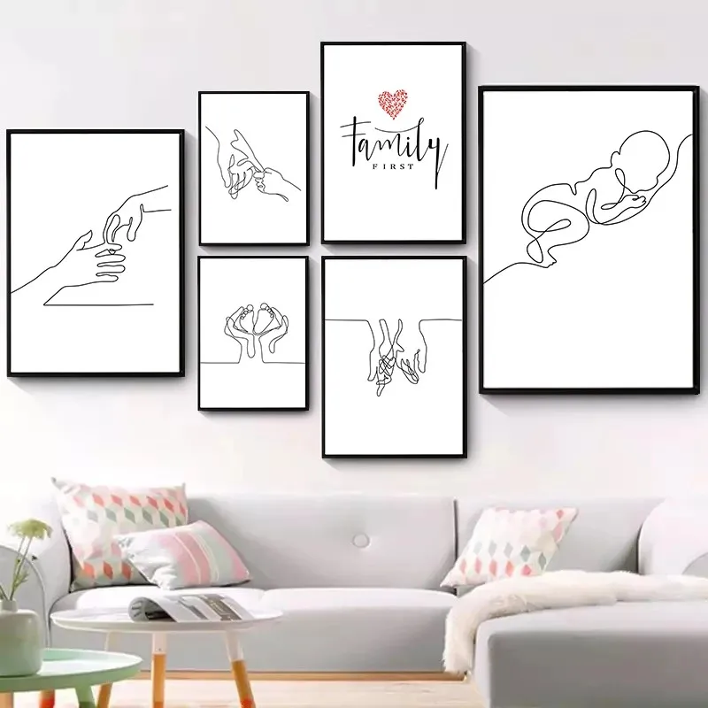 Настенное искусство счастливая семья Холст Живопись Искусство ручной росписи линии любовь ребенок скандинавские постеры для детей Детская комната Декор настенная роспись