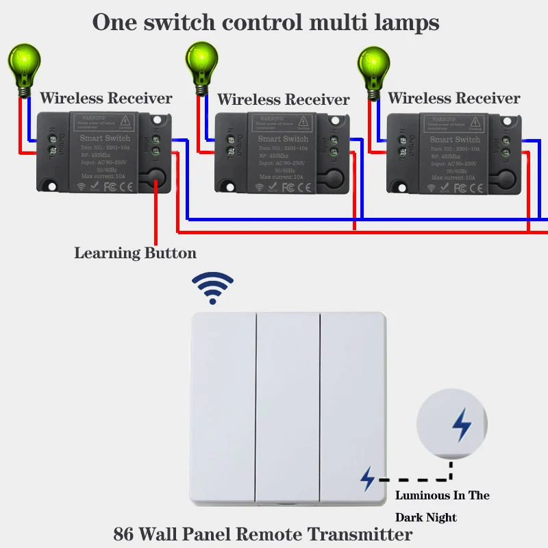 Номер моделиAC 110V 220V Receiver Wall Panel button Ceiling Lamp LED Bulb Switch