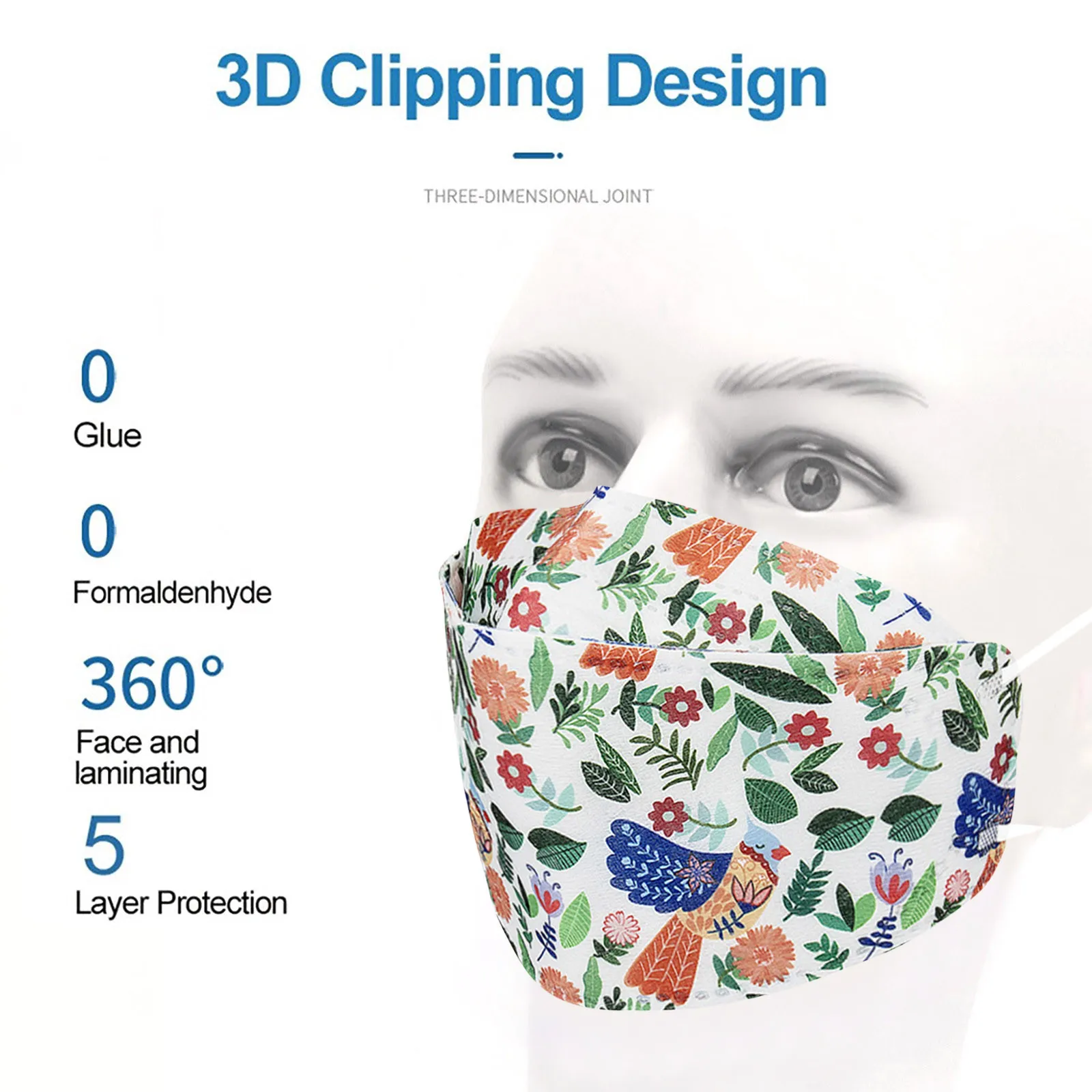 Маска FFP2 KN95 с цветочным принтом, 5 слоев фильтра, 10 шт.