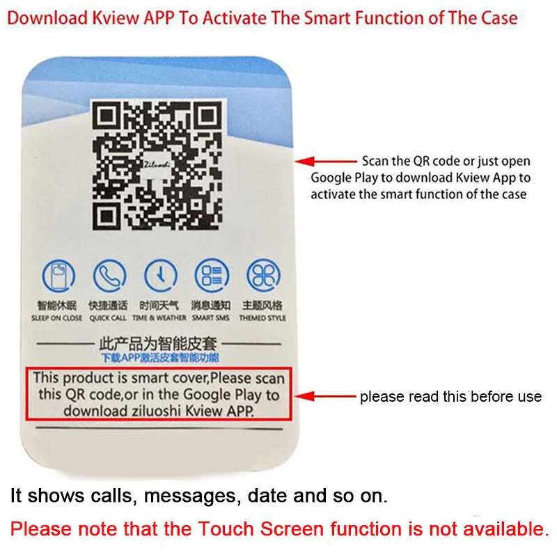 Обратите внимание: доступна только функция пробуждения/сна. Вы не можете отвечать на звонки через флип-чехол. Инструкции по использованию: Step1 находите карты с qr-код в розницу посылка (идут в комплекте чехол) Шаг 2: отсканируйте qr-код, чтобы загрузить и установить программное обеспечение, чтобы активировать привлекательную функцию «smart Wake Up/Sleep». 5