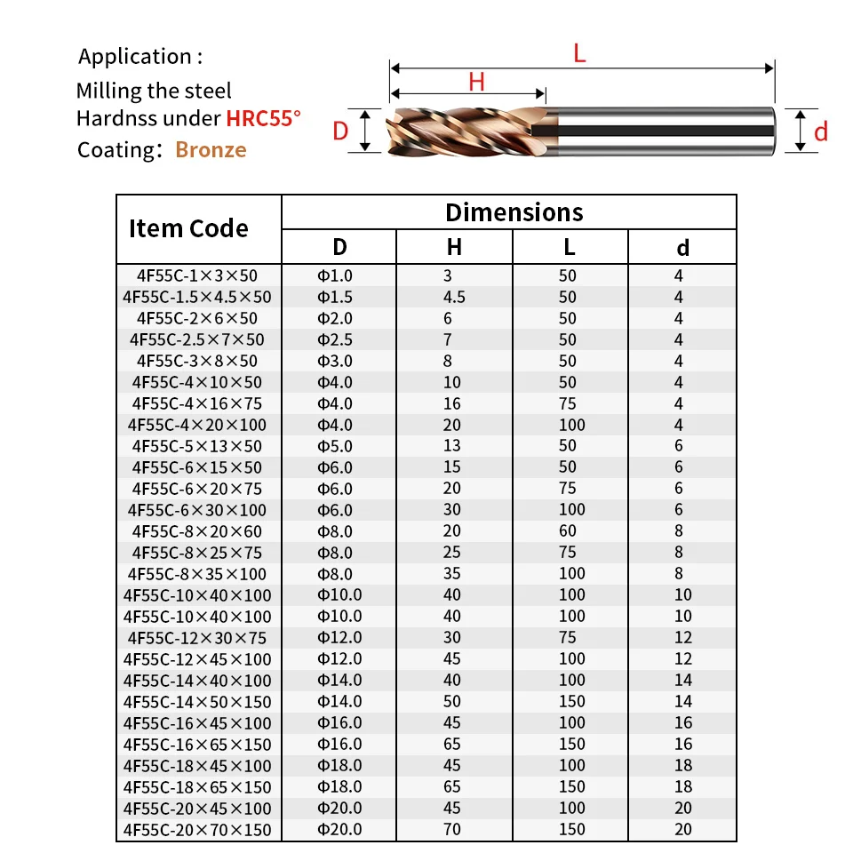 Твердосплавная Концевая фреза VACK HRC55 4 продольные фрезы, для покрытия из сплава вольфрамовой стали, режущий инструмент, концевые Фрезы с ЧПУ 2, 4, 5, 6, 8, 10 мм