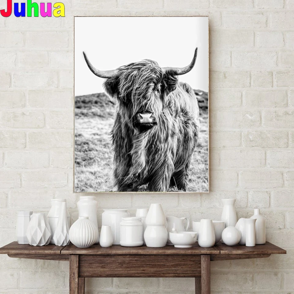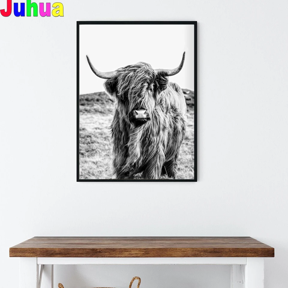 Алмазная живопись горная корова DIY Алмазная вышивка коричневый бык...