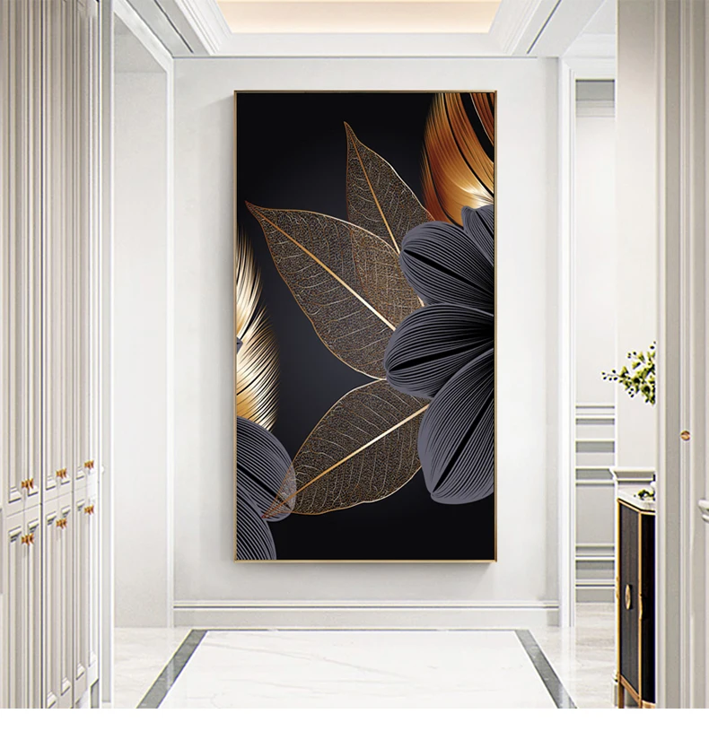 Абстрактная Роскошная Картина на холсте с цветами и листьями, Насте...