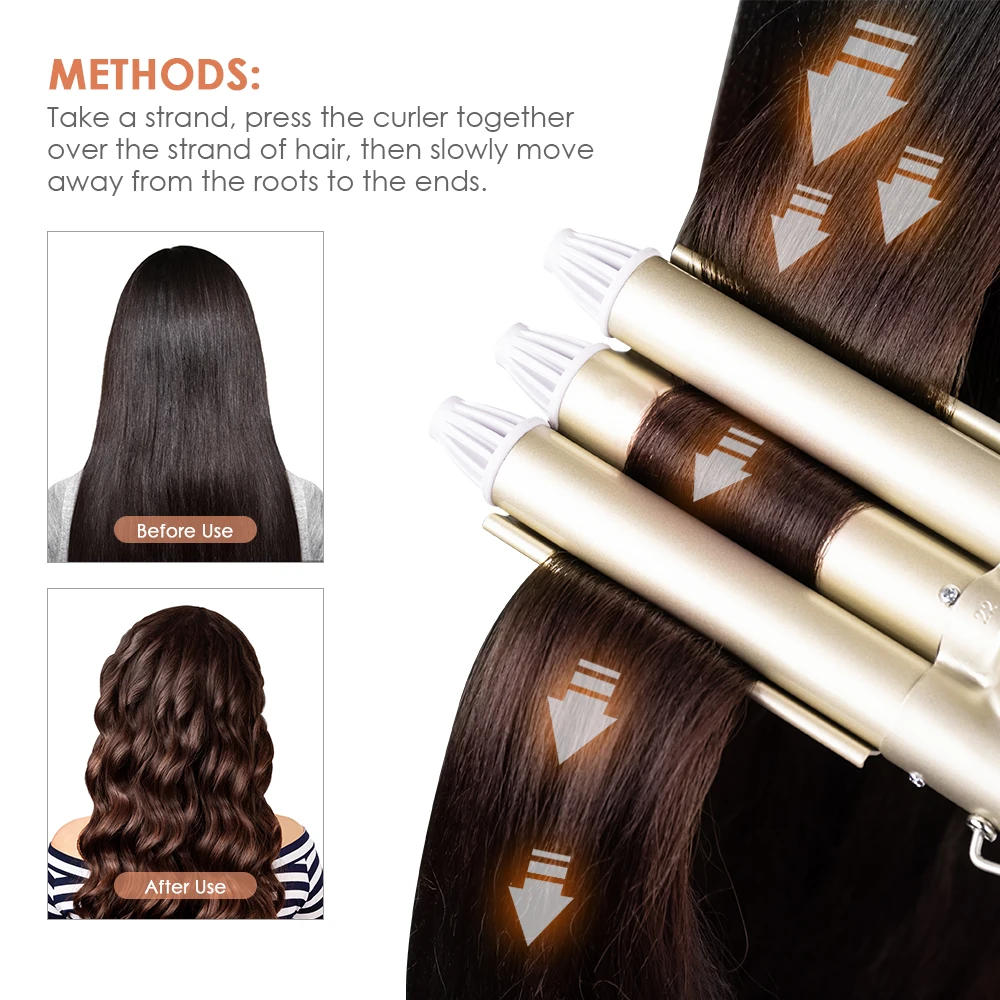 1. Уникальный дизайн 3 трубок, завивка "S" волнами с 3 бочками одновременно!2. Высококачественный нагреватель с функцией локонов обеспечивает непревзойденное распределение тепла3. Нагрев тела PTC, высвобождает большое количество отрицательных ионов и автоматически восстанавливает поврежденные волосы, что может сделать ваши волосы более здоровыми, естественными и более стойкими4. Быстрое нагревание оборудования, немедленно нагревается для наиболее подходящего ощущения в течение 30 секунд