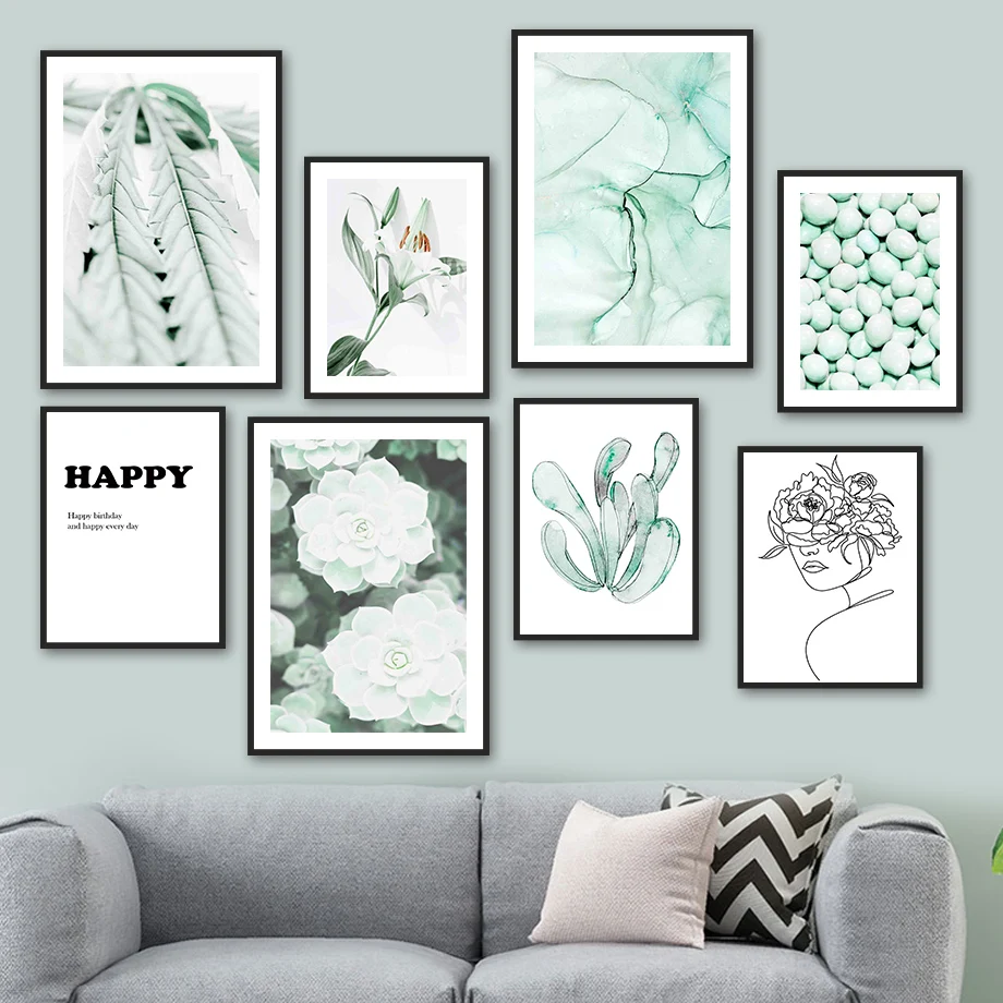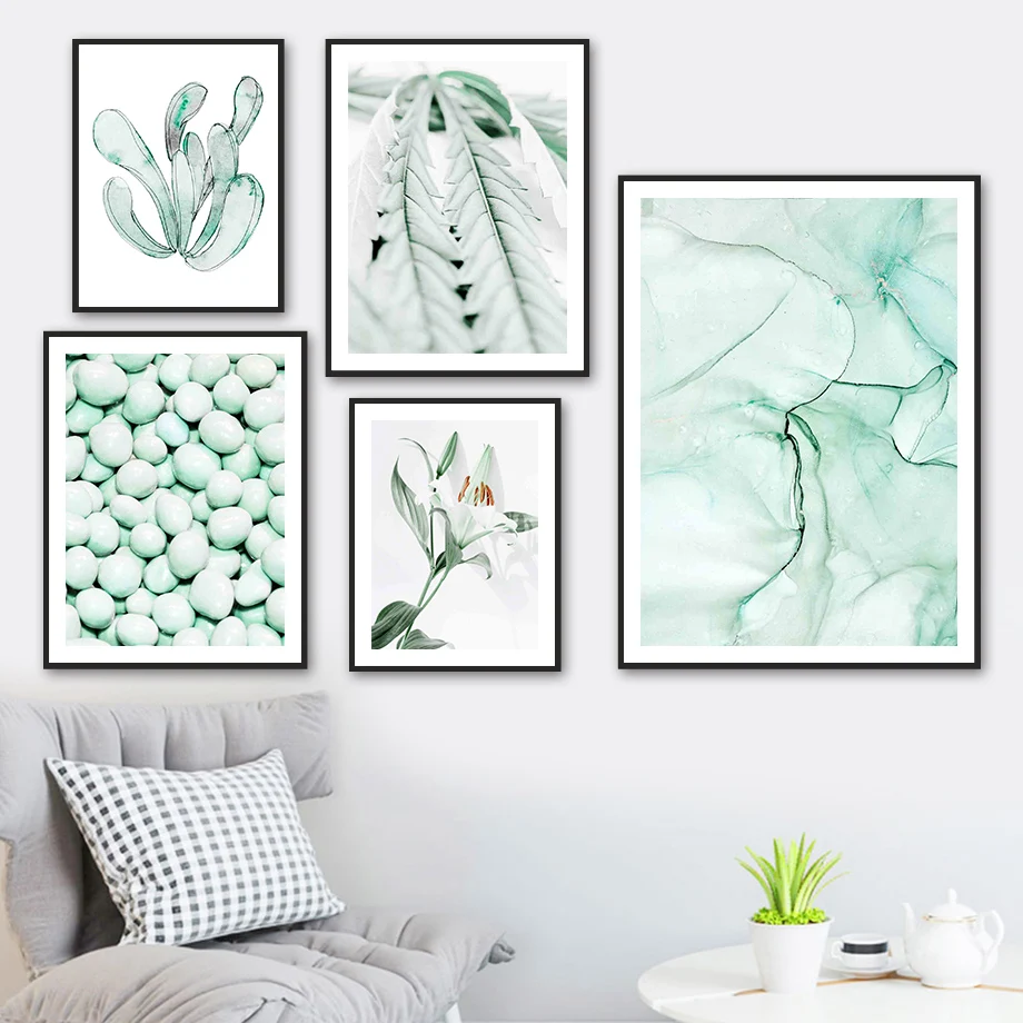 Зеленое растение цветок лист природный пейзаж настенное Искусство Х...