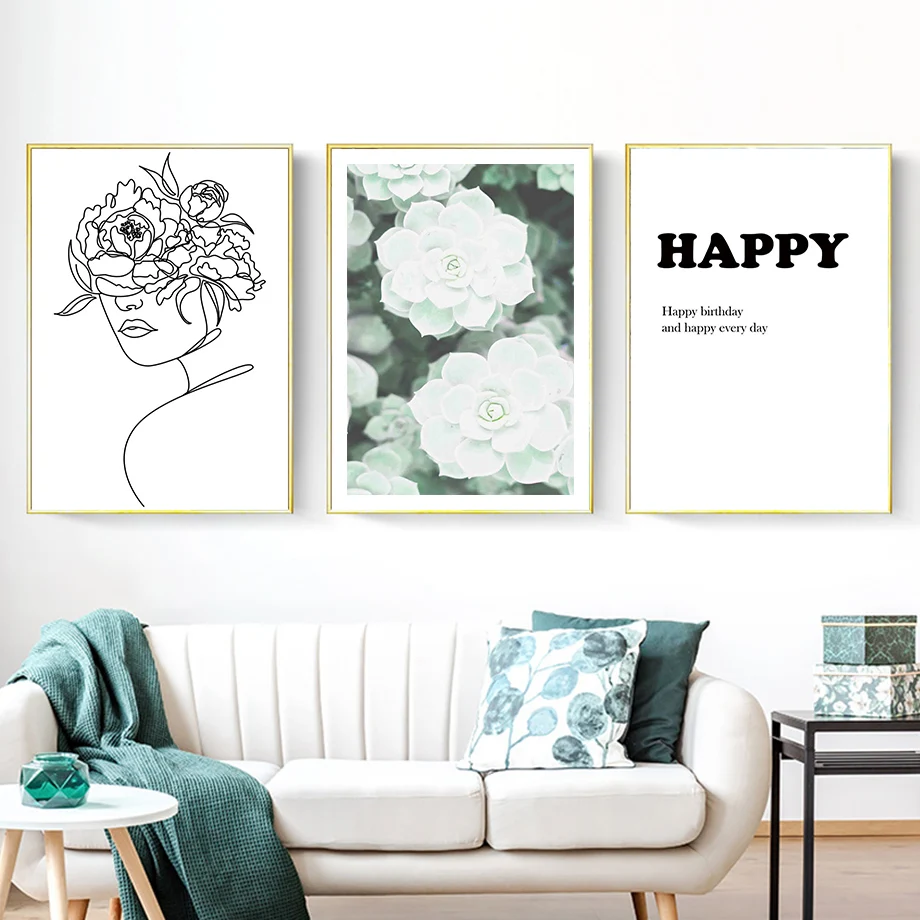 Абстрактная линия, листья глаз, женщина, цветной блок, настенная Ка...
