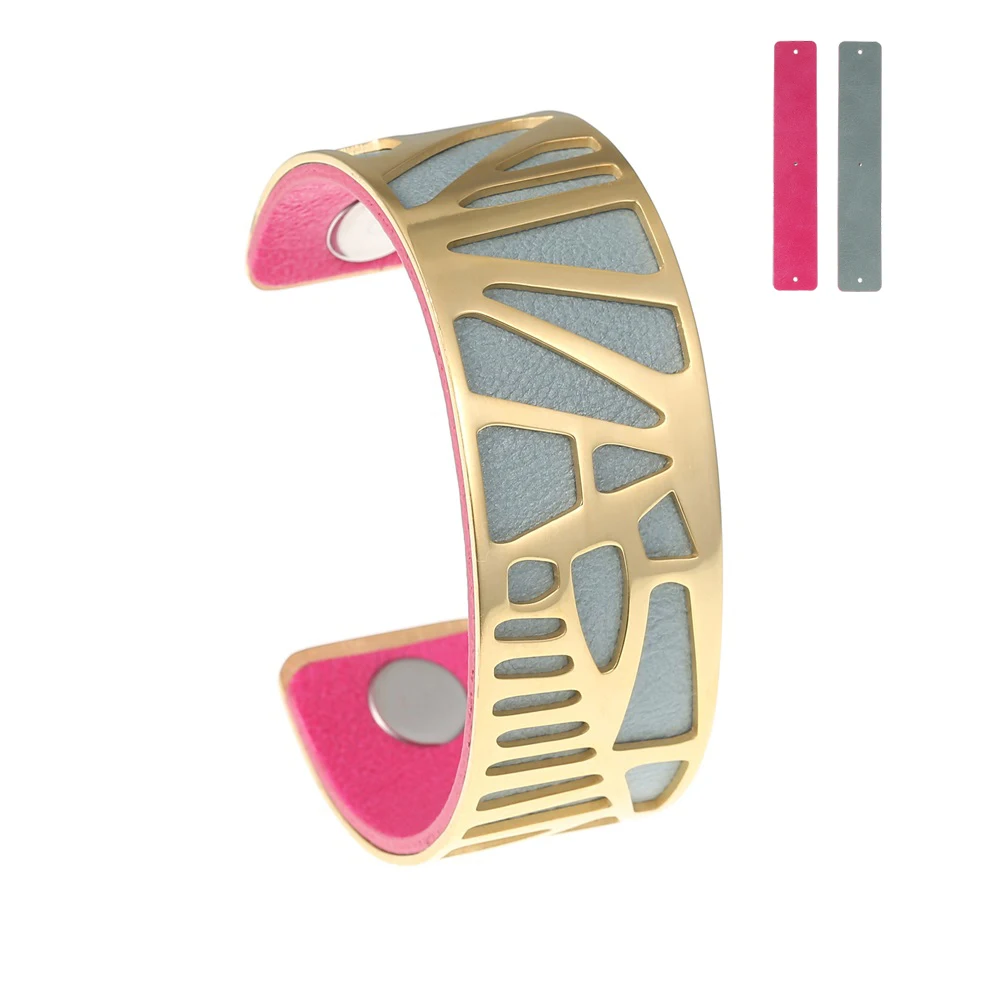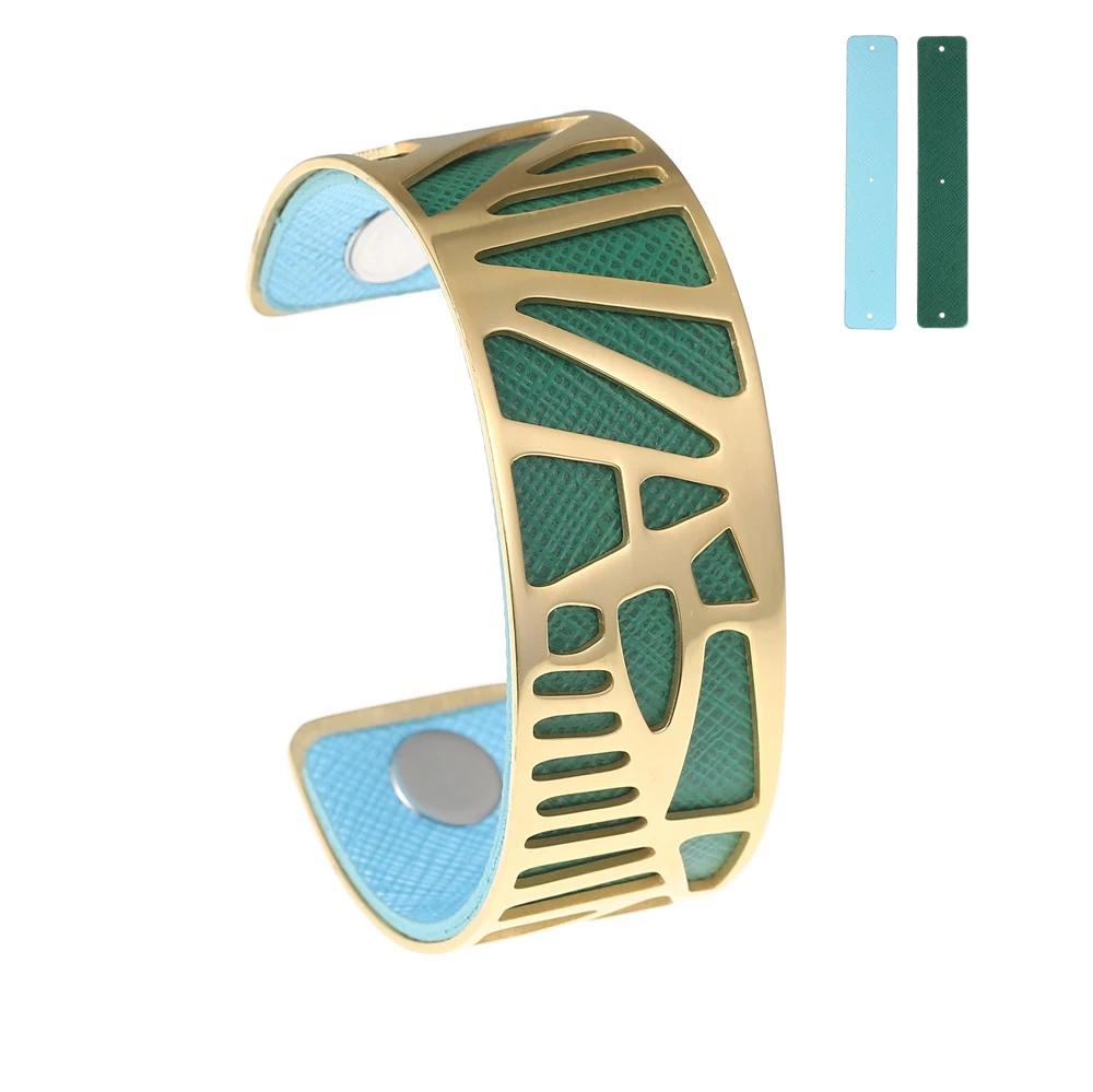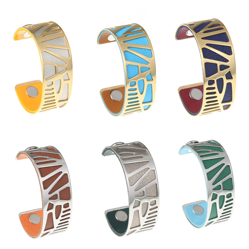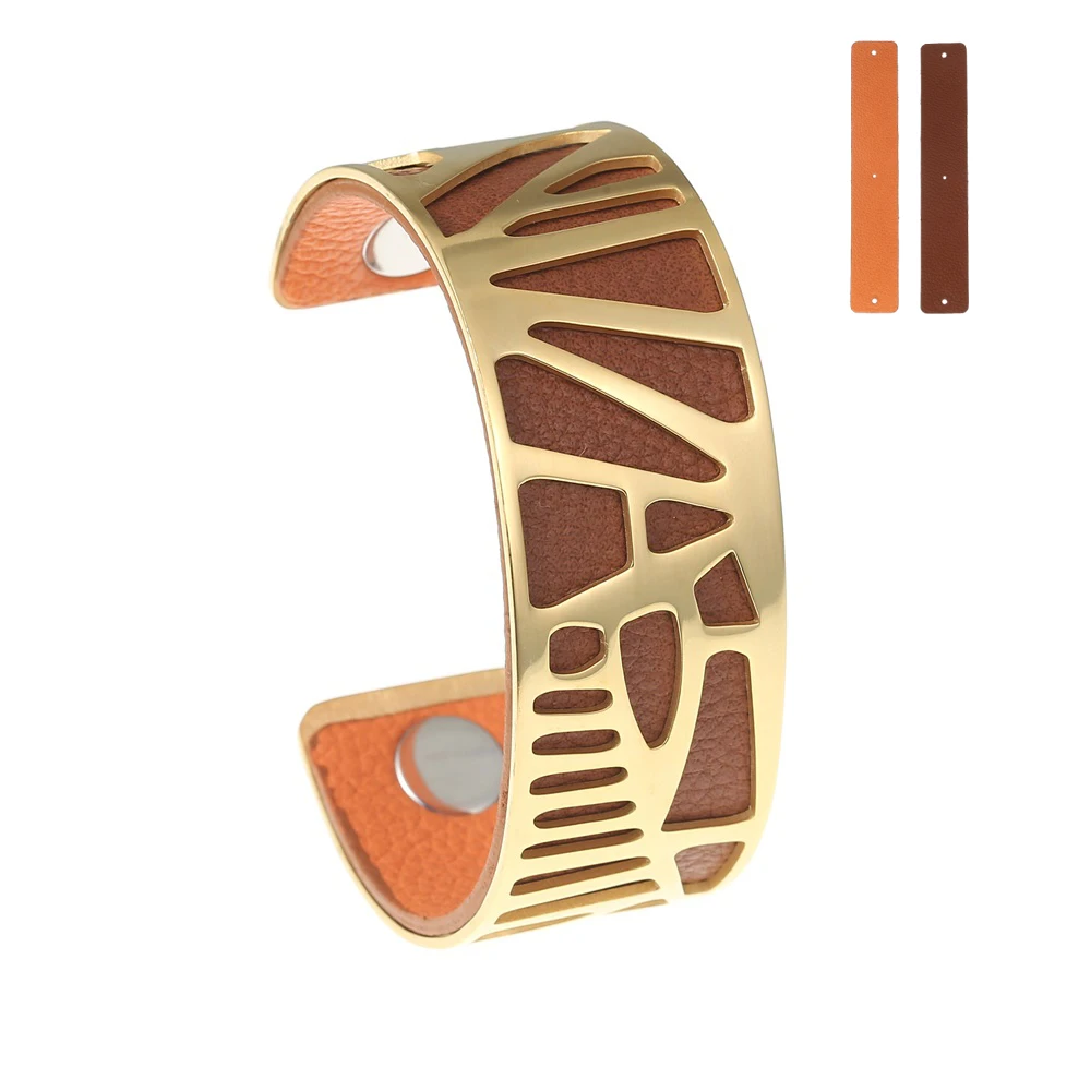 Женский Браслет-манжета из нержавеющей стали, со сменной кожей