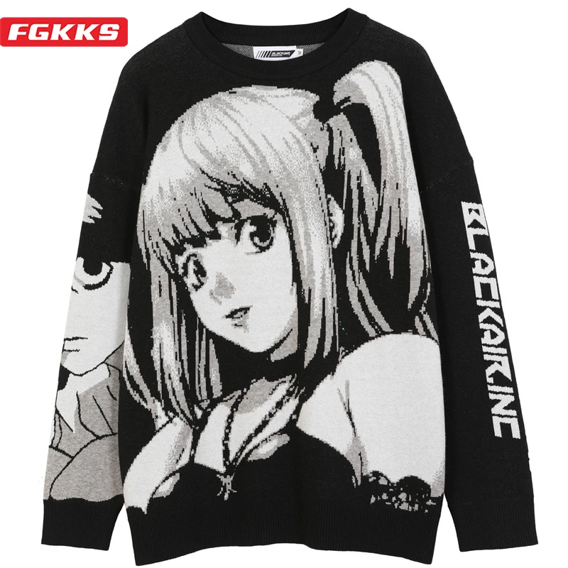 Мужской свитер в стиле хип-хоп FGKKS, винтажный Трикотажный Хлопковый пуловер в стиле японского аниме для девушек, уличная одежда в стиле Харадзюку, 2021