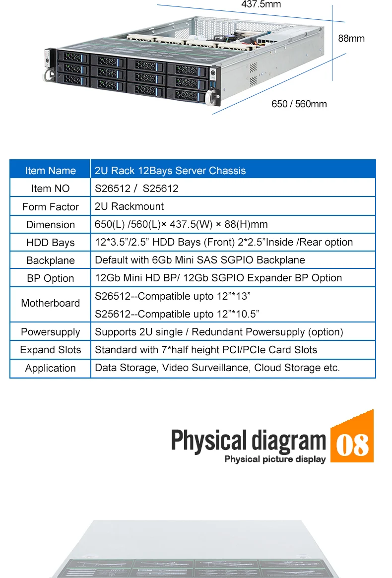 • Аналогичный продукт --- доступны шасси CSE_S26508 (поддержка макс. 12 "x10.5" и т. Д. Материнская плата.)
