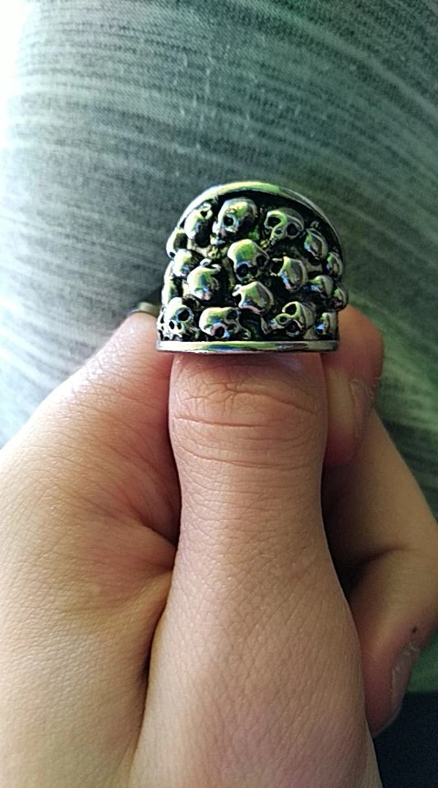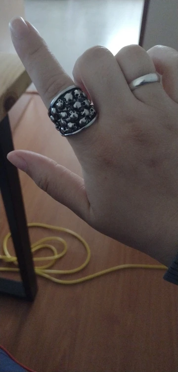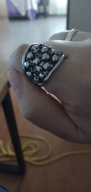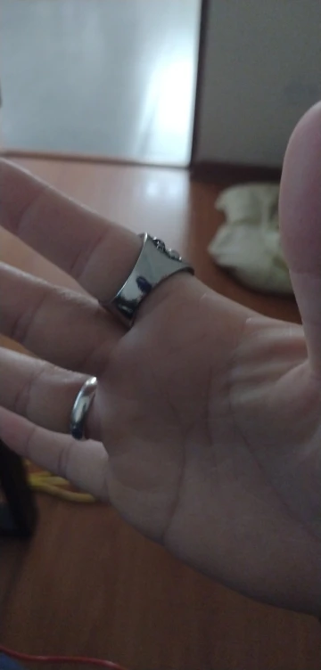 Не угадала с размером, даже на большом пальце вообще не держится. Отдала кольцо папе