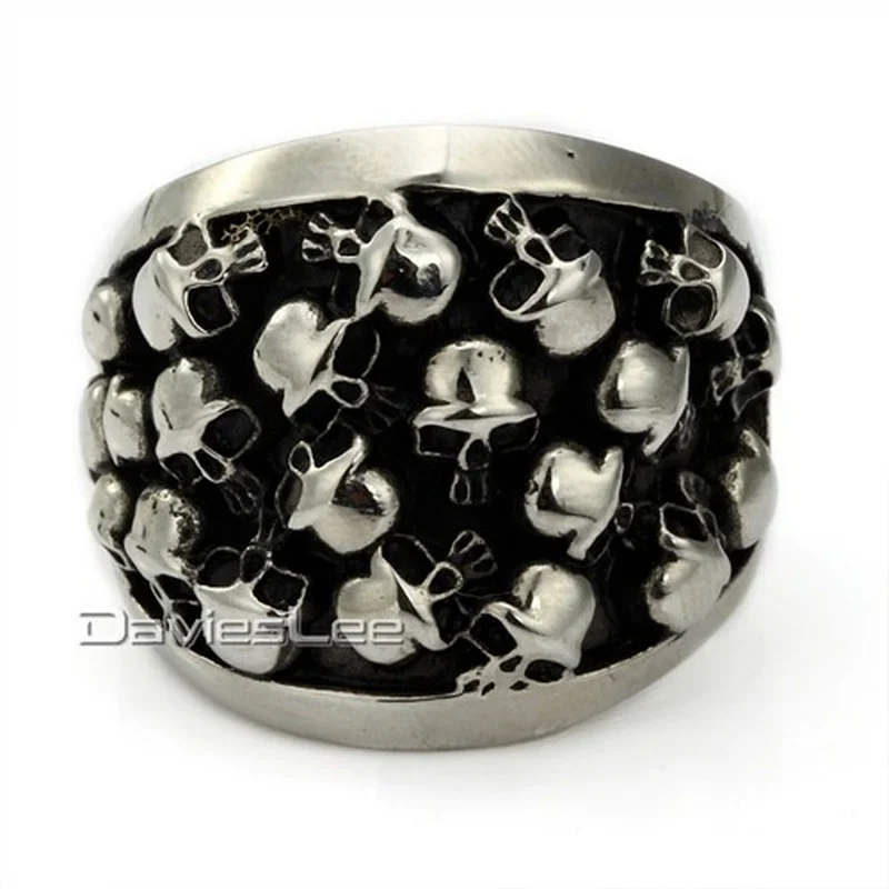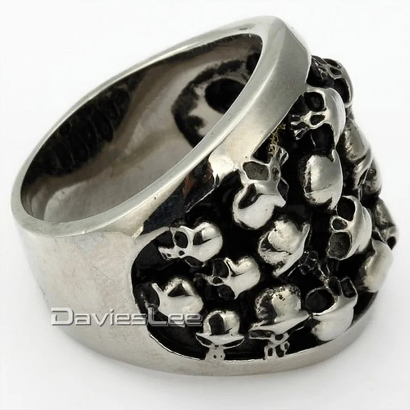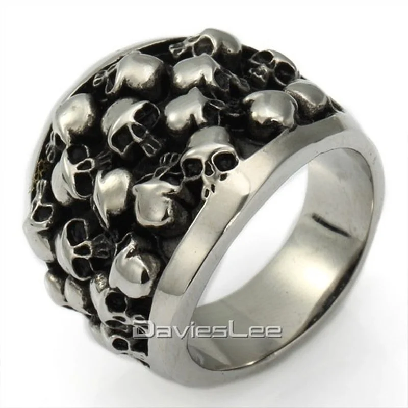 Мужское кольцо в стиле панк готика из цинка с черепом на все лицо