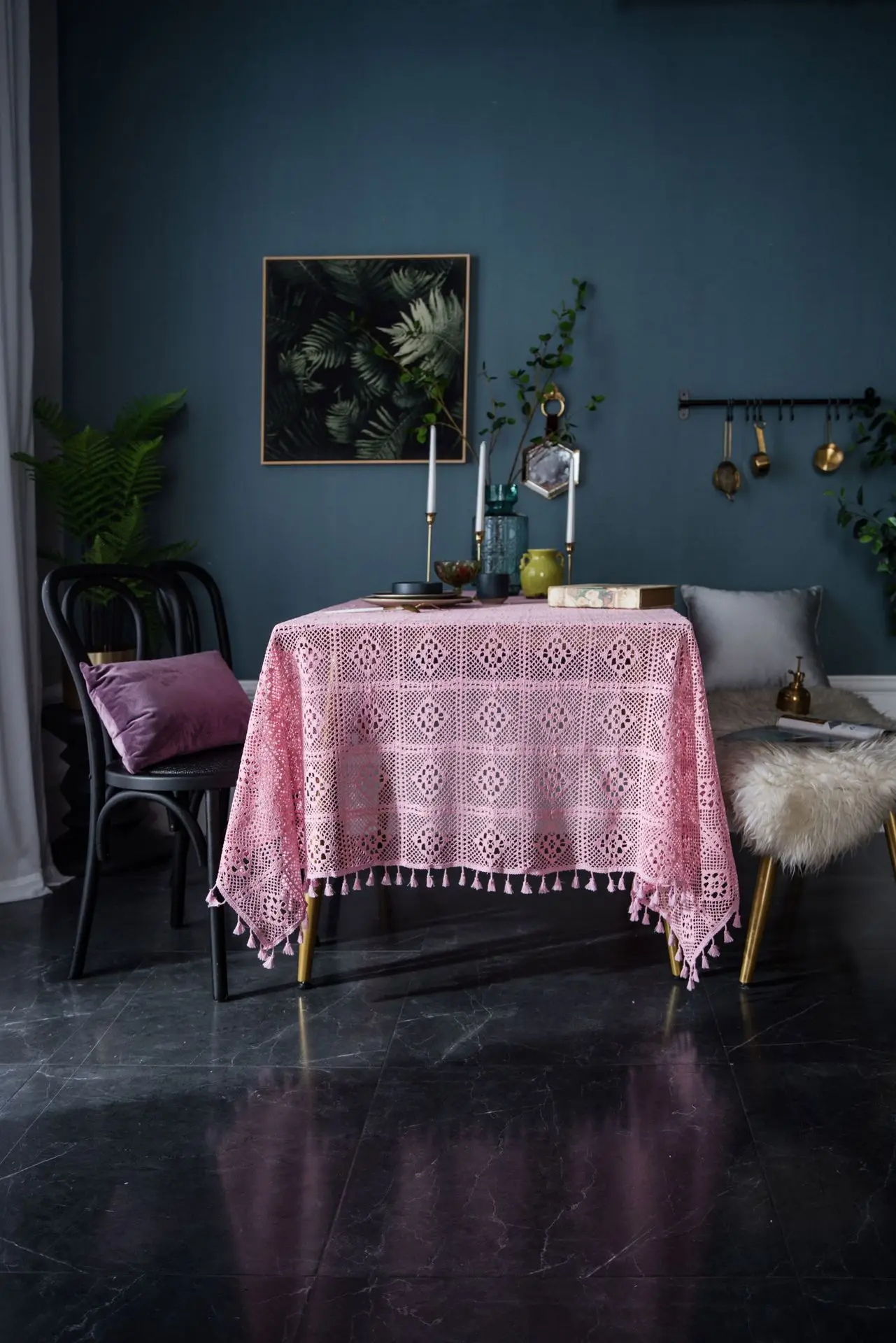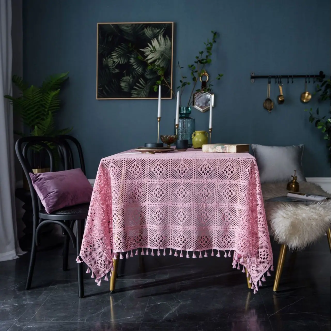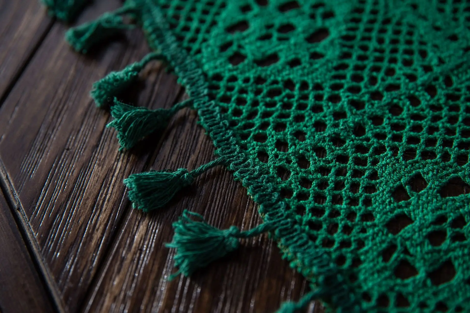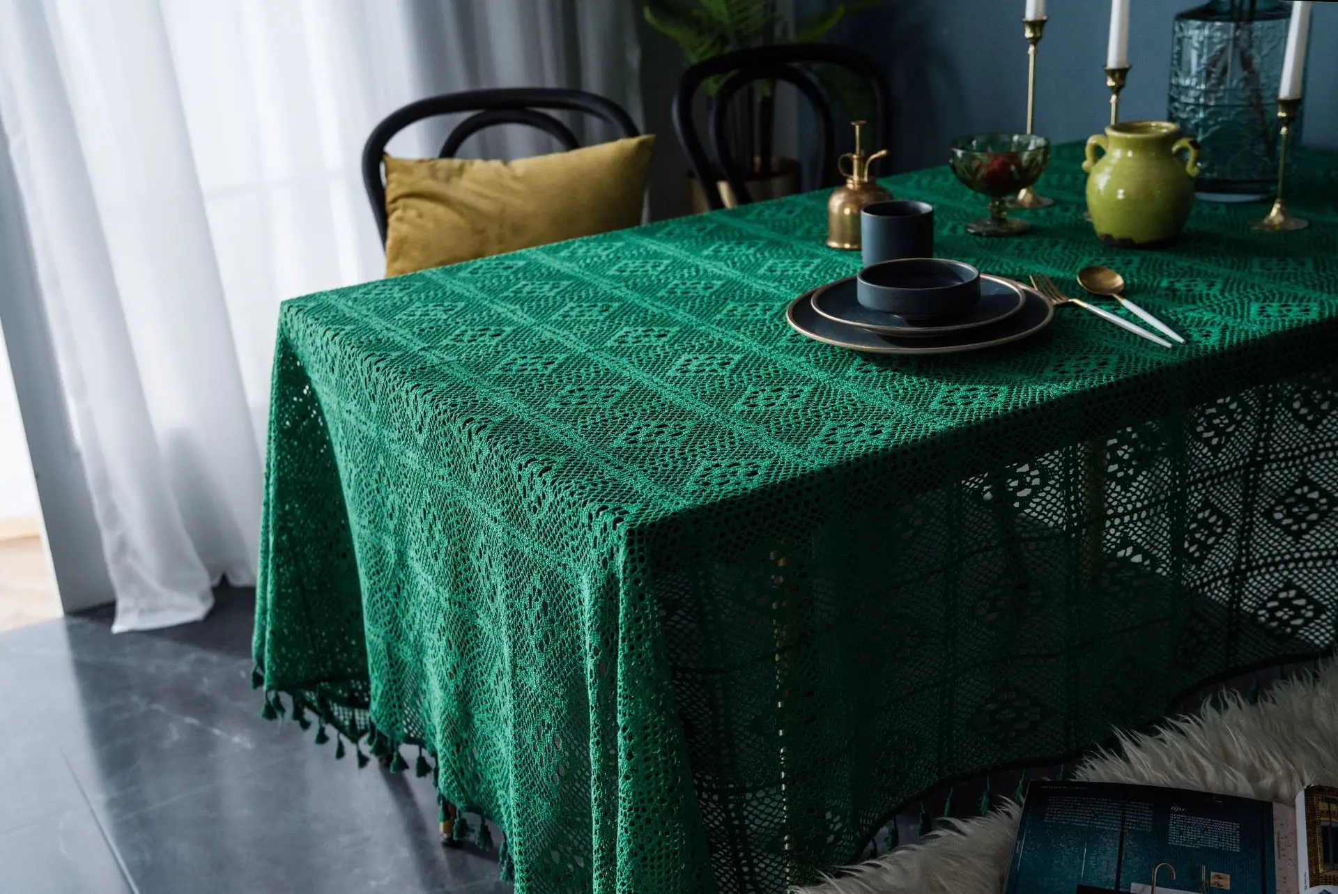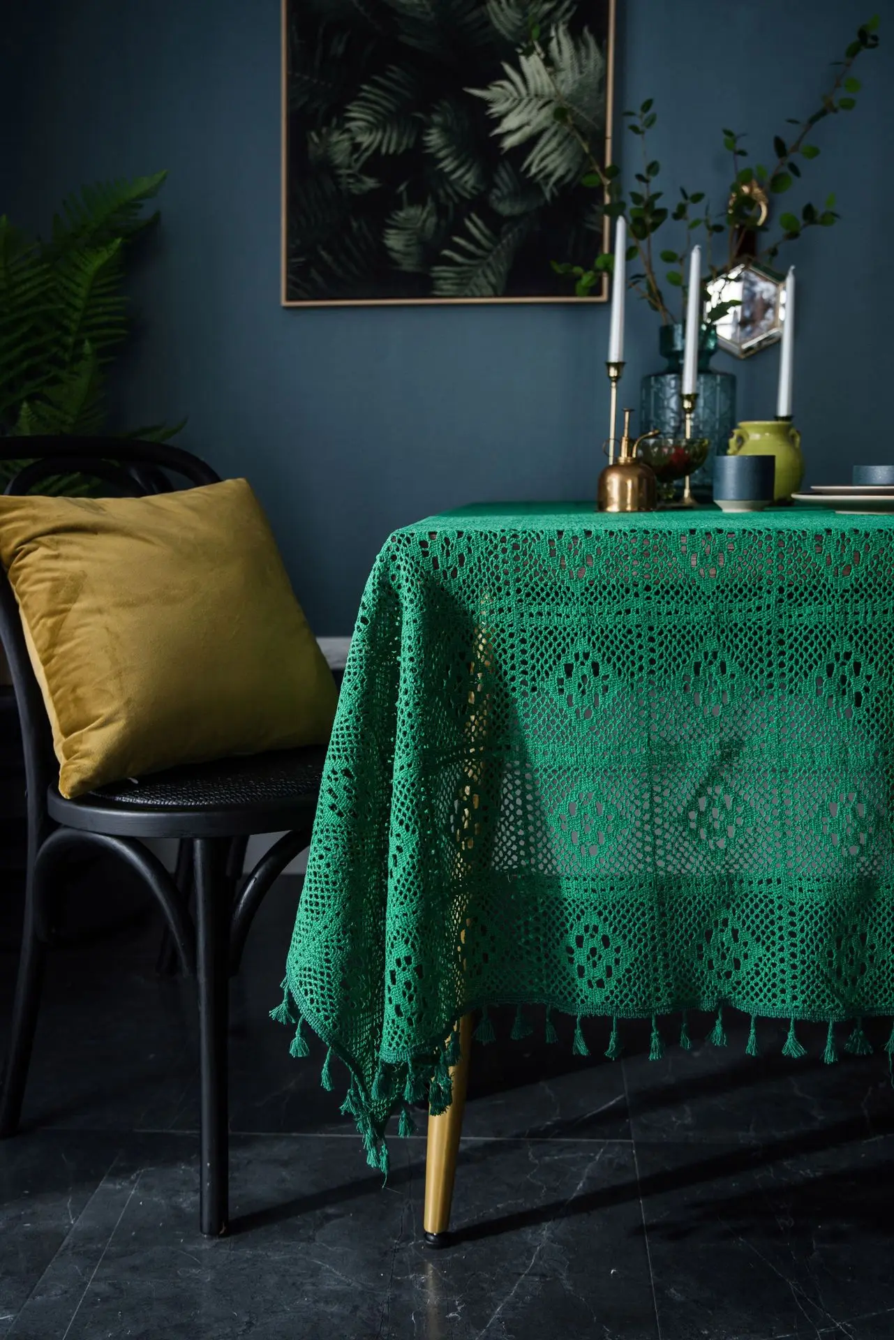 Пузырь поцелуй Ретро темно-зеленый Покрывало Русалочка, ручная вязка скатерть Хлопковый вязаный полые скатерть для кофейного столика ткань фоновые украшения ткань