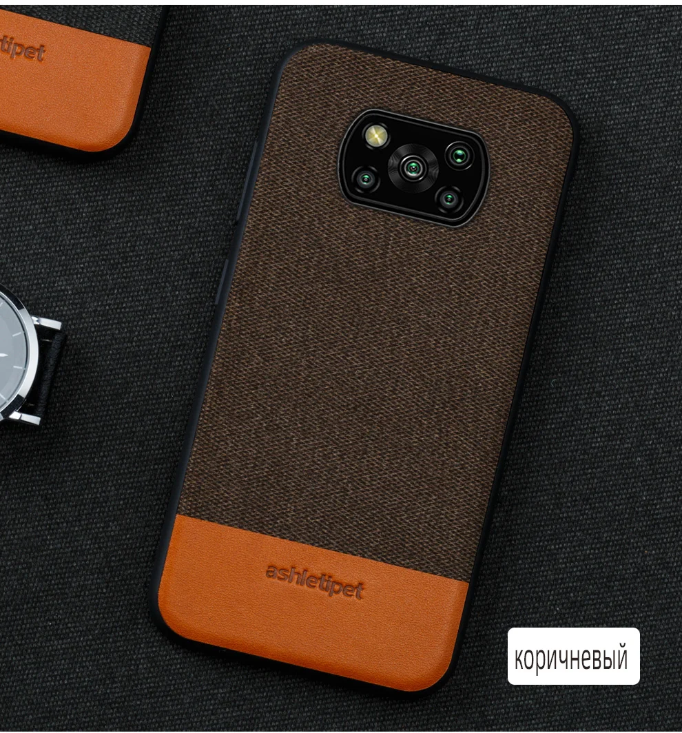 case for POCO X3 materialcanvas fabric +cowhide +PC